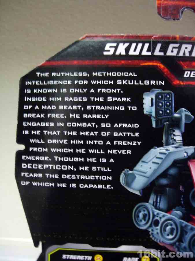Skullgrin shipped in November 2010 with two other notable toys-- War for Cybertron-inspired Cliffjumper, and another classic Pretender character, Thunderwing.