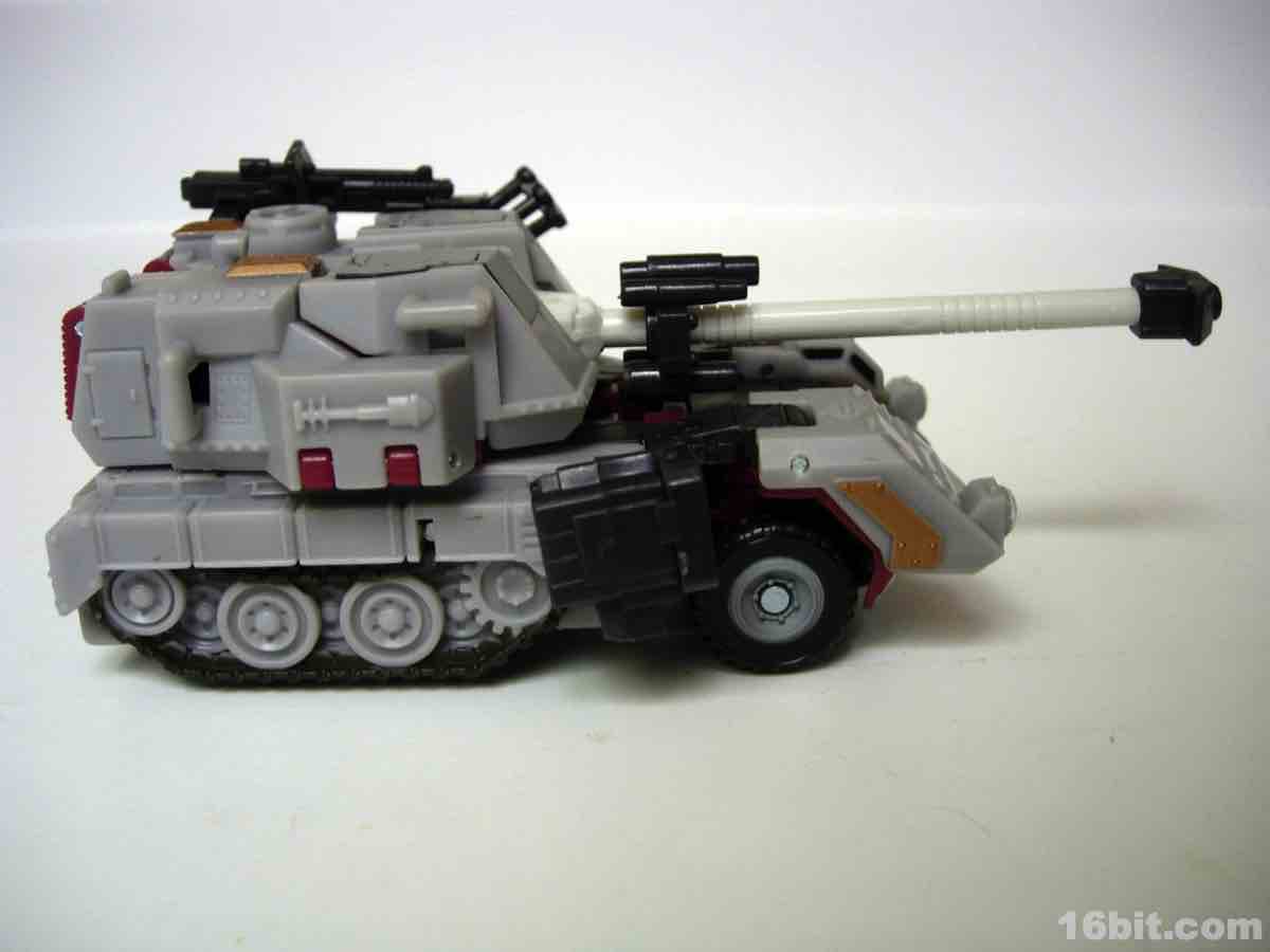 In tank mode, there's not too much going on. The wheels turn, the turret spins, and you can raise or lower the barrel. Also, the clamp-on weapons can be stuck in any of a number of places for your amusement. Grey really works for this vehicle, so even if you have Darkmount I'd suggest snagging one of these if your budget allows for repaints and remolds.