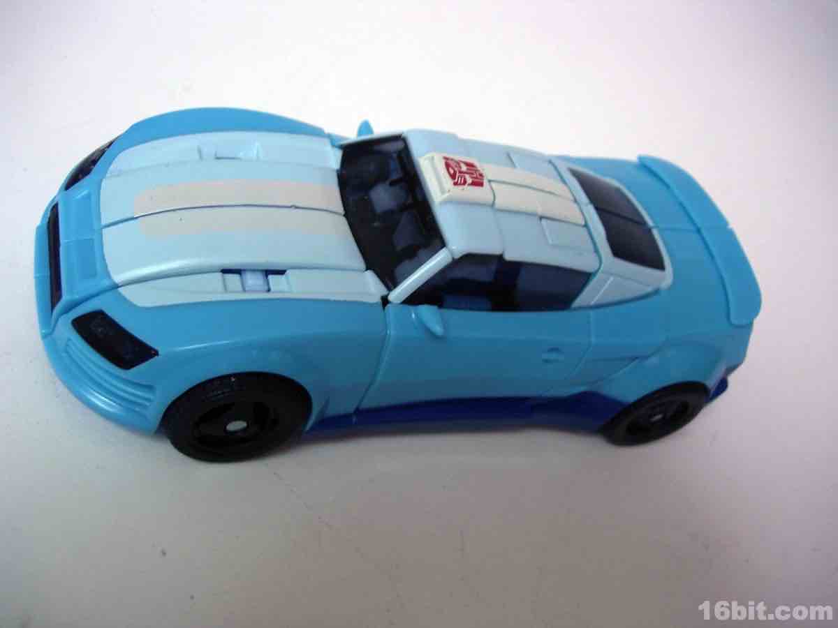 I'm generally quite impressed when a Transformers design gets two distinctive characters out of a single mold. Blurr makes clever use of the same form as Drift, although the mold feels more like it was born to be Drift first. Some retooling in the vehicle and robot modes, plus a new head, adapt the design of the sword-swinging IDW Comics character into the fastest-talking character in animation history... more or less. Despite being the same colors as Blurr, the toy feels like it has little in common with the toy and character from the 1980s. (Although it's clearly more Blurr than, let's say, Armada Blurr from 2002.)