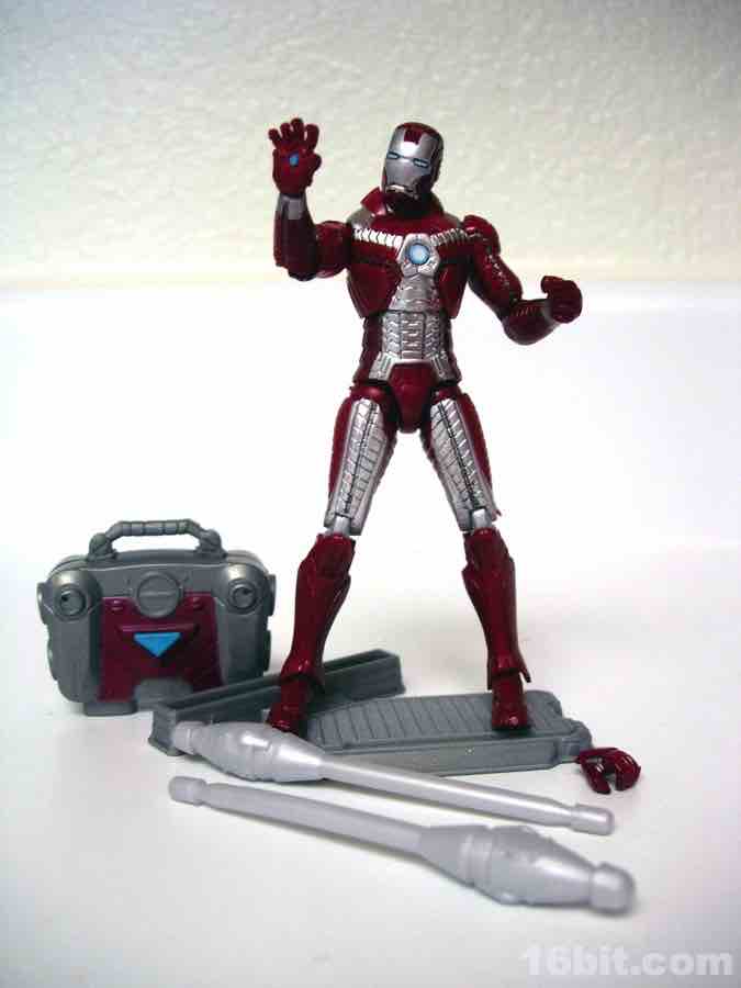 I have to admit, I do enjoy the wacky briefcase accessory. You can fire rockets out the side of it, and it opens-- that's a win-win, easily. Sure it's a little weird but frankly, I don't have enough briefcases that can knock over my other toys with a touch of a button. It even opens to reveal some armor detailing inside, making it an above-par accessory for the Iron Man 2 action figure line. After all, most figures come with a stand, a clear energy blast, and a stack of cards. This is way more fun.