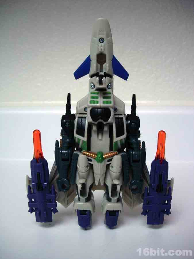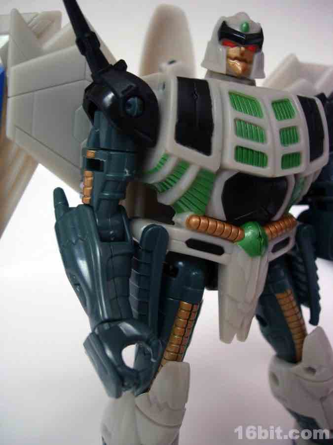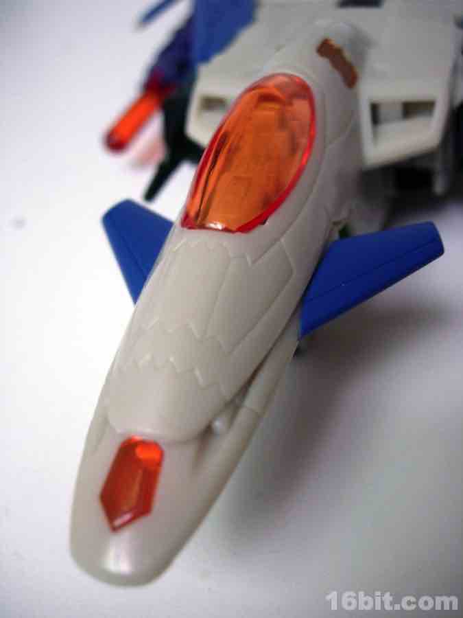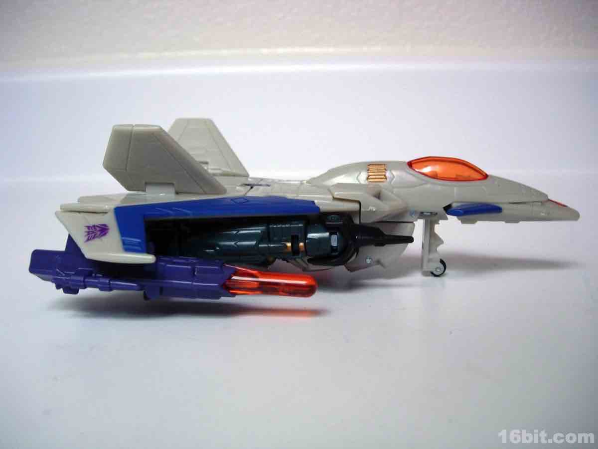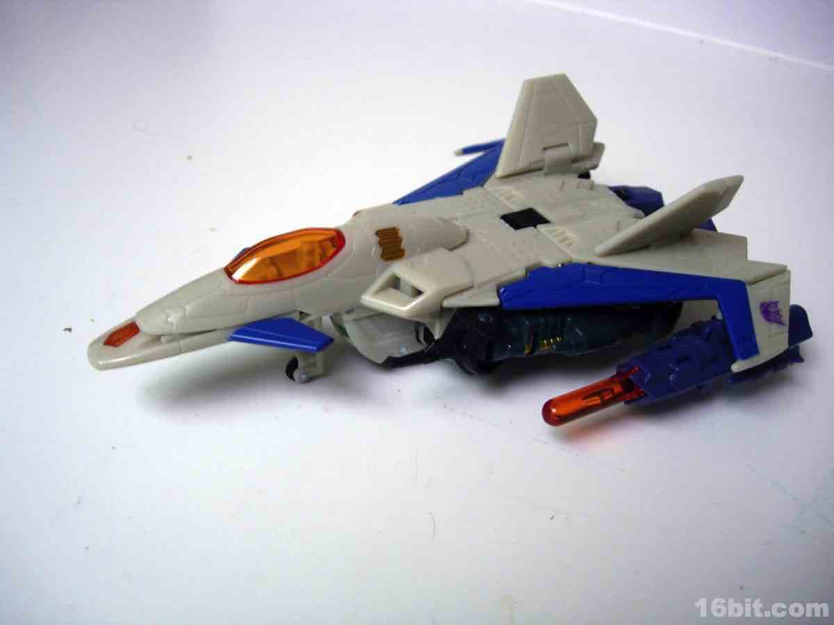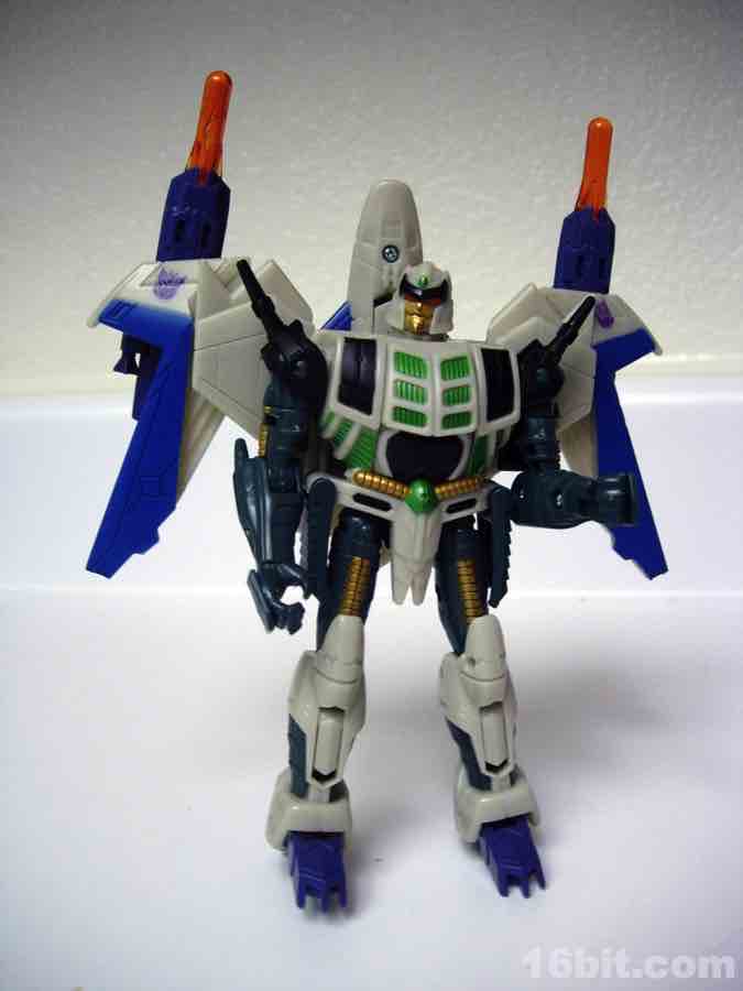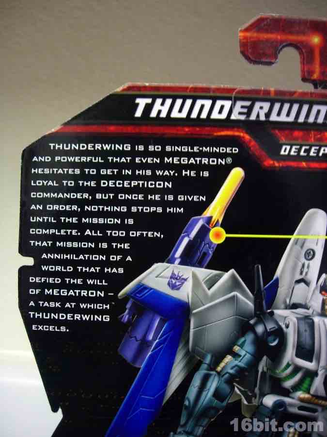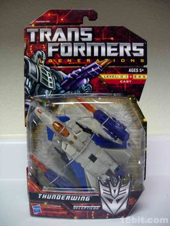 Rather than slap Thunderwing's head on an existing body, Hasbro made an entirely new figure which many fans thought, at first glance, was something else. Some said it was the original, some thought it was a different character, simply because it looks weirdly retro with its distinctive color scheme and orange canopy. The figure has an extremely simple transformation-- basically you fold out his legs, rotate down the chest, and presto-- instant robot. I prefer it when Hasbro makes a figure like this, simply because five years from now I'll be able to transform it without scratching my head and wondering where the left hand is supposed to go.