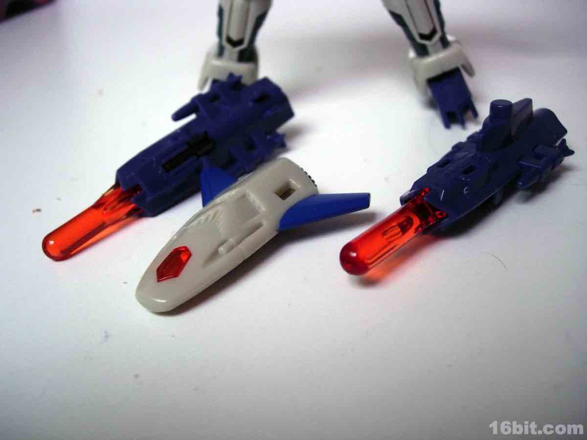 In plane mode... it's a plane. The guns are removable, and there are retractable landing gear, but it doesn't do much else. I'm OK with this, but sometimes you might want a little more action. Hasbro included a removable drone accessory, which was similar to how the "inner robot" attached to the Pretender shell of the original toy. Since the Drone looks like an unfinished accessory and doesn't do anything, you may as well just leave it attached so you don't lose it.