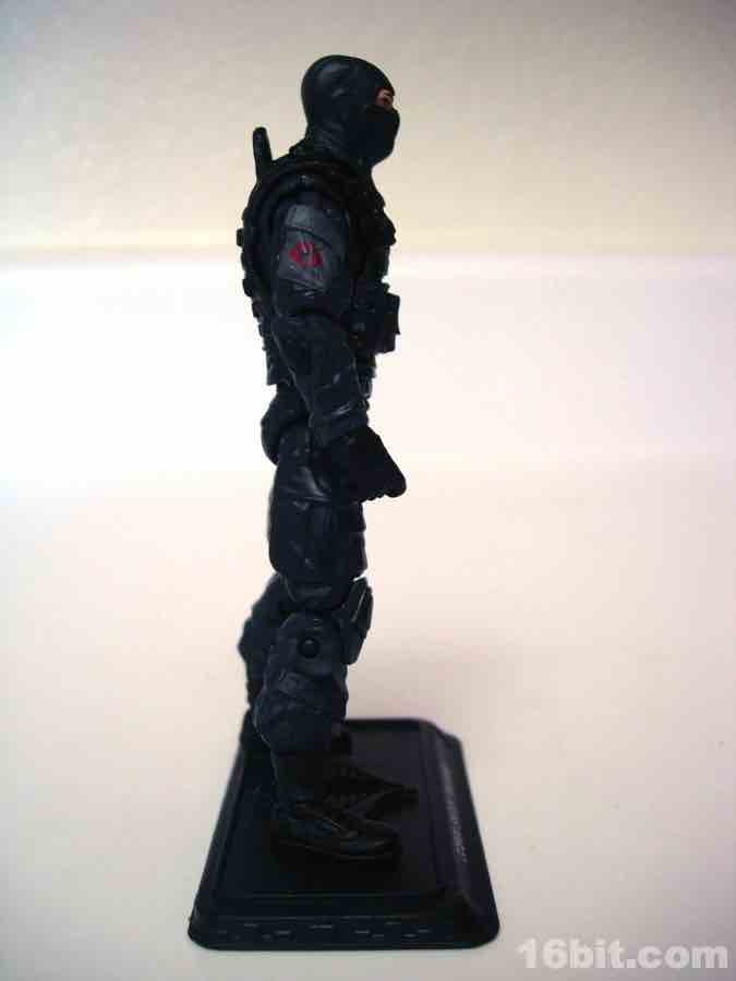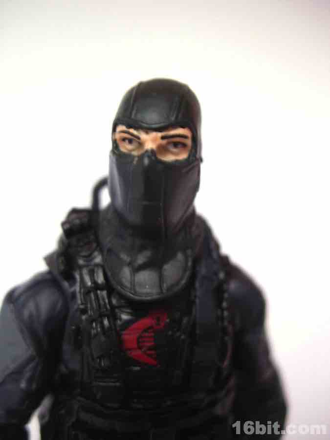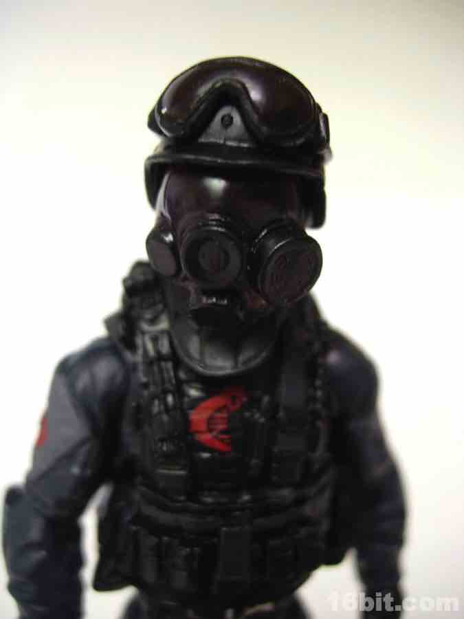 Standing just over 4-inches tall, the sculpt will initially knock you off your feet. It's great-- the costume looks really good, with all sorts of wrinkles, armor, pads, and even a handle to carry an injured man off the field of battle. If you took the Cobra logos off this guy, he'd probably make a great cop figure. His face is hidden behind a mask, which itself can be hidden behind a breathing mask and helmet. In short, he's pretty well-covered. Molded in very dark blue and black plastic, this should be a good addition to anybody's dioramas, I guess, but I'm not a diorama guy. I like my troopers weird and oddly colorful, preferably with a big symbol which doubles as a target for the opposing team. For those reasons, I find this figure to be both completely excellent in execution and incredibly dull. It also had the dubious fortune of shipping along side the most amazing Snake Eyes of all time so far, so it's hard for what should have been the best figure in ages to stand out... because something else is even more amazing.