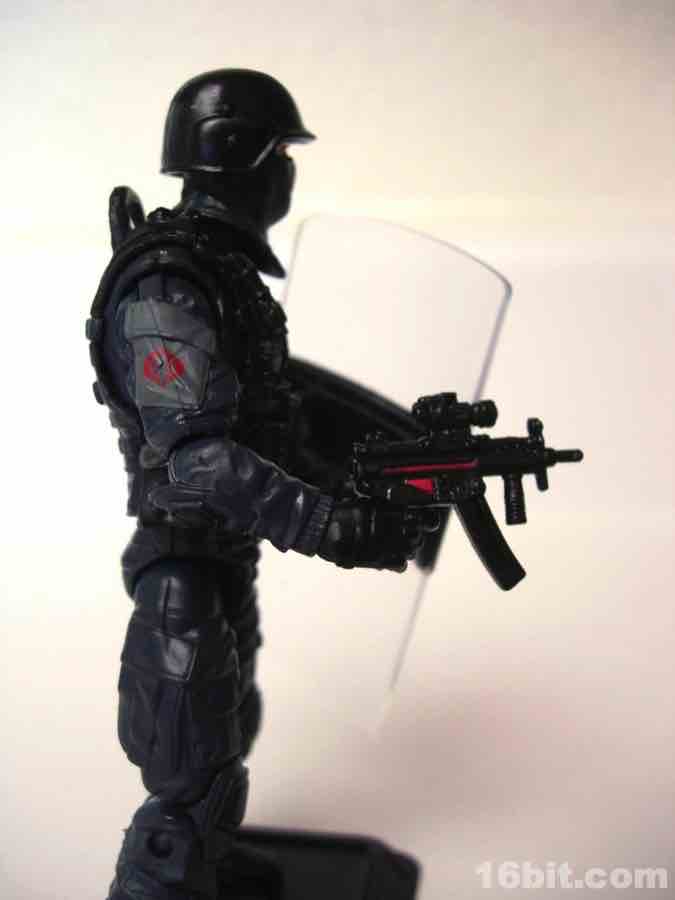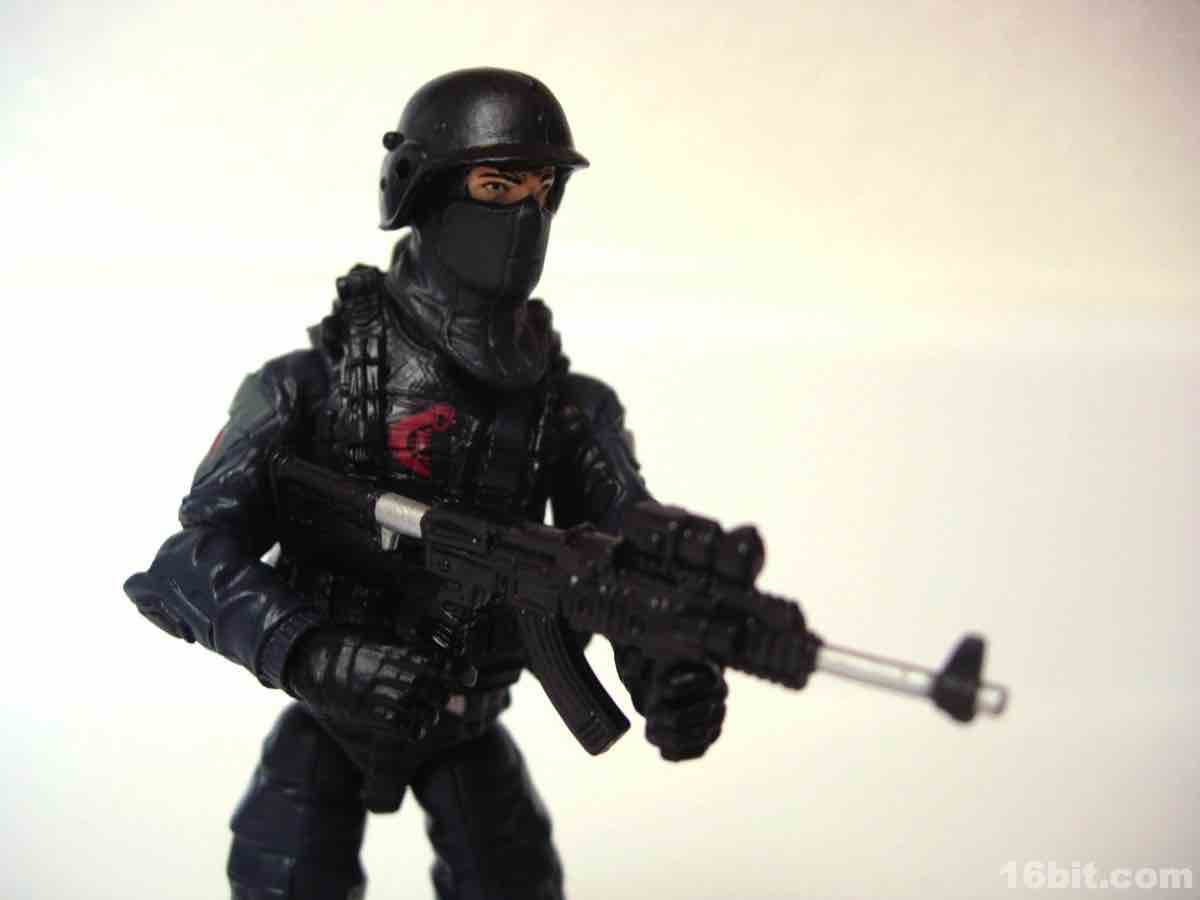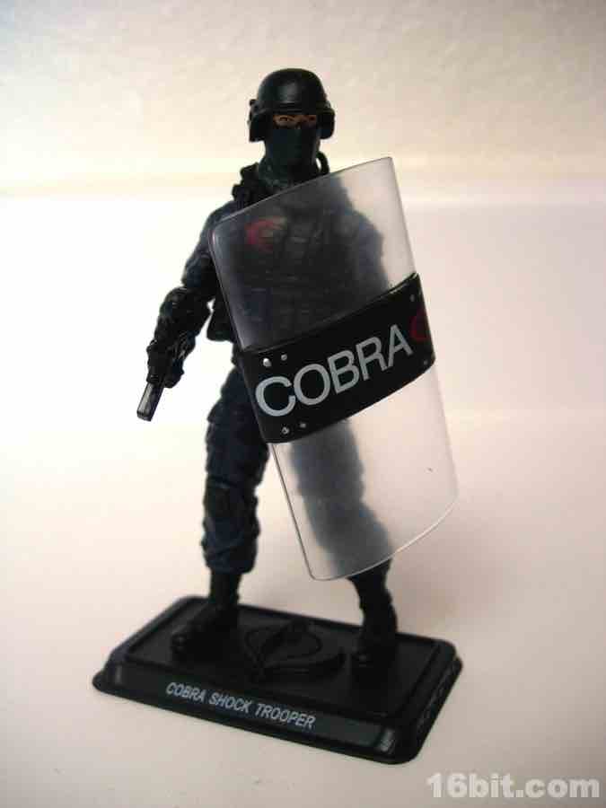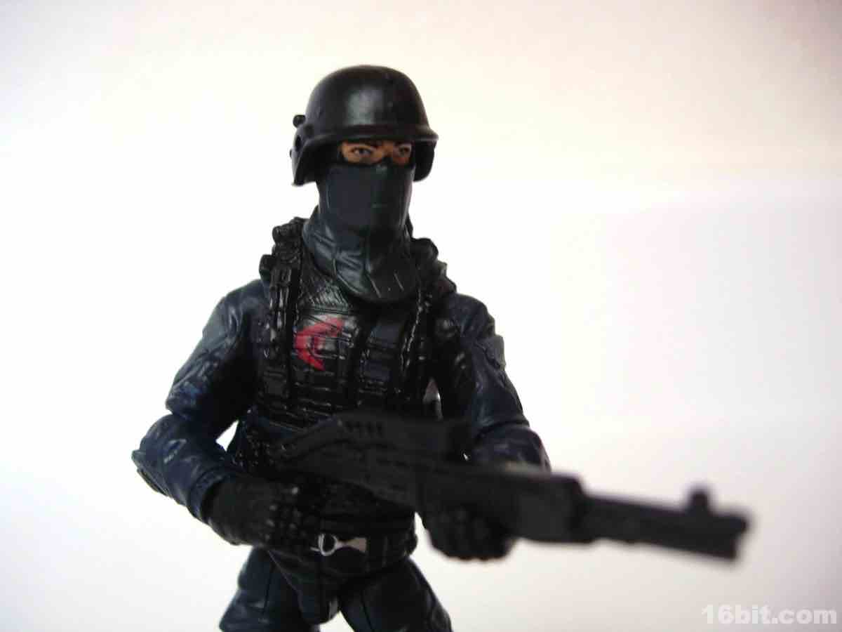 One of the most anticipated (and popular) figures in the Pursuit of Cobra range was the super-cool Cobra Shock Trooper figure. The figure shows off some real love from Hasbro, putting in some amazing work on the accessories, sculpt, and articulation which go above and beyond your average figure. However as a member of Cobra, it's a little less imaginative than evil monocle dentist or crazy vulture man. The Cobra Shock Trooper dares to be realistic, which is a word fans in all walks of life use but deep down may not really want.