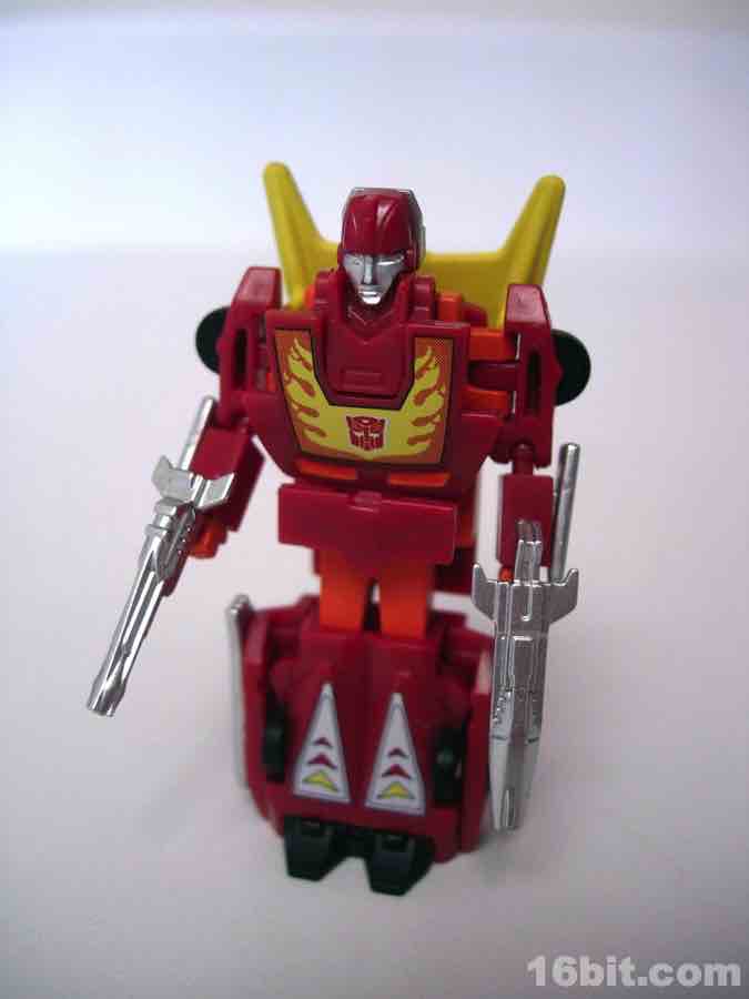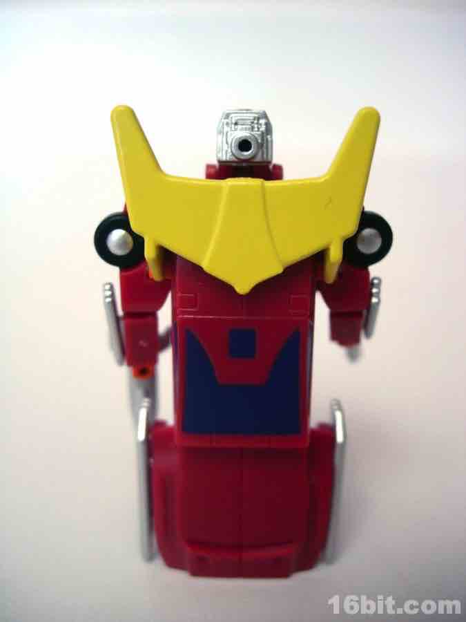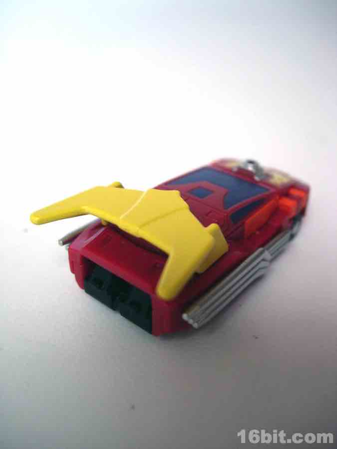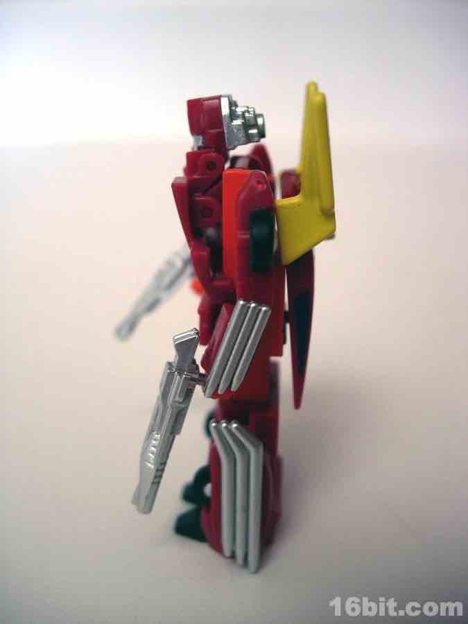 Standing a mere 2.5-inches tall at the top of the spoiler in robot mode, this figure is perfect for your Unicron-based dioramas or for desk fodder. He has two tiny twin blasters which fit right into his fists, and the paint job is quite remarkable. No labels are needed, all the flames and other detailing were added at the factory.