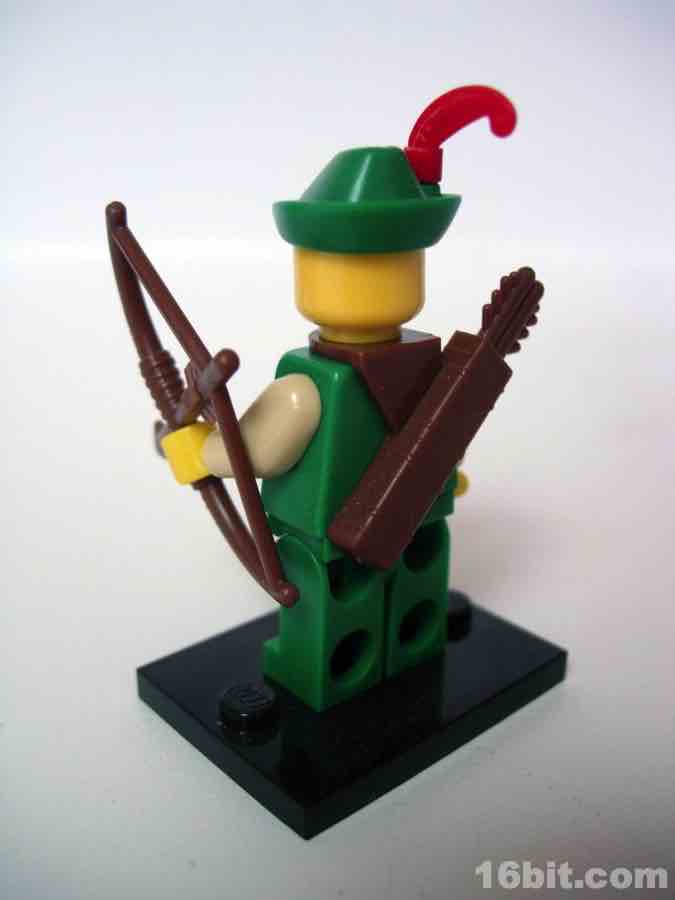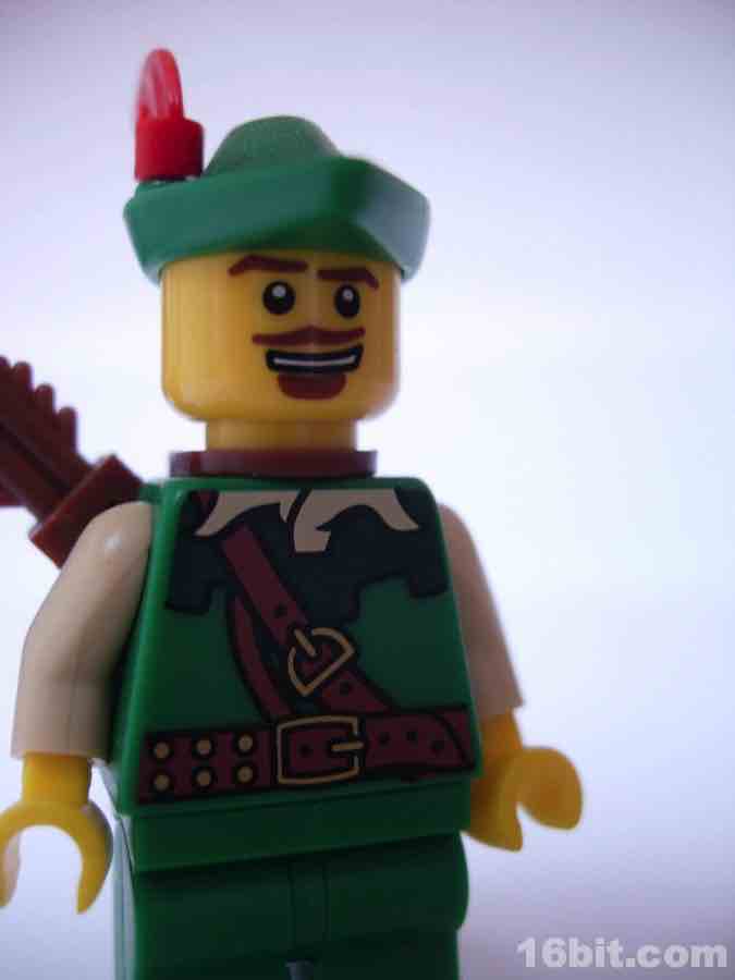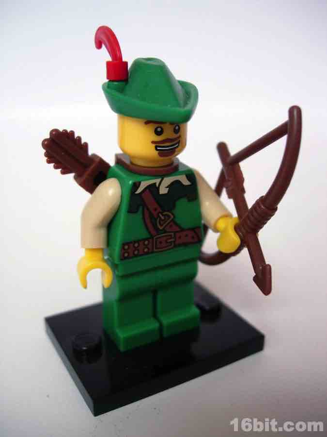 Except for paint, this is very much like the LEGO Minifigure "forestman" figures sold over 20 years ago, complete with awesome hat, little feather, bow, and an excess of green. Unlike those figures, this one has increased detail printed on his torso, a much better "swashbuckling" face complete with facial hair, and arms that are brown-- and not green or red. (Brown was an uncommon color during the 1980s.) The costume is clearly improved, and this figure is a clear upgrade from the original ones sold in sets like in the now-more-sensibly-named Forestmen's Hideout in 1988.