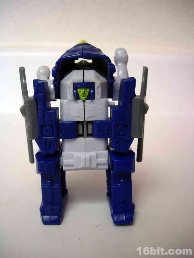 While I love the monster mode most, you'll want to turn him into his chunky, craptacular robot form eventually. To see it, just rotate down the legs, rotate up the tail, and split the wings along the back. Presto-- there's your brick robot that is Flamefeather. In robot mode he's almost no fun. I barely transformed these as a kid just because the monsters were so neat, and the robots just didn't do a damn thing. I guess if you get one, you can wait 23 years and then take a picture of it. That's what I did.