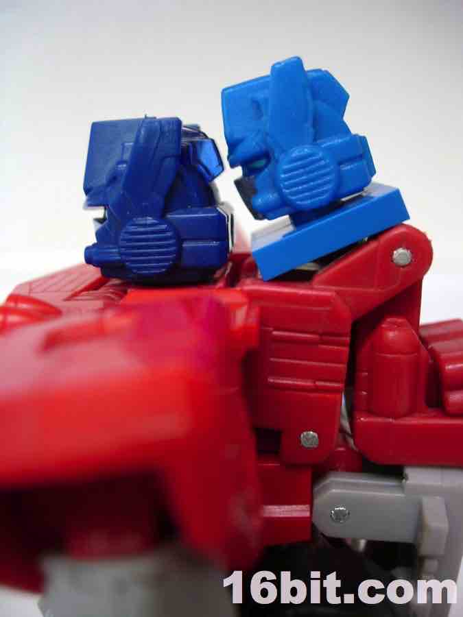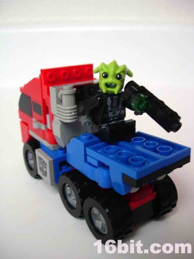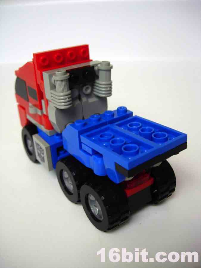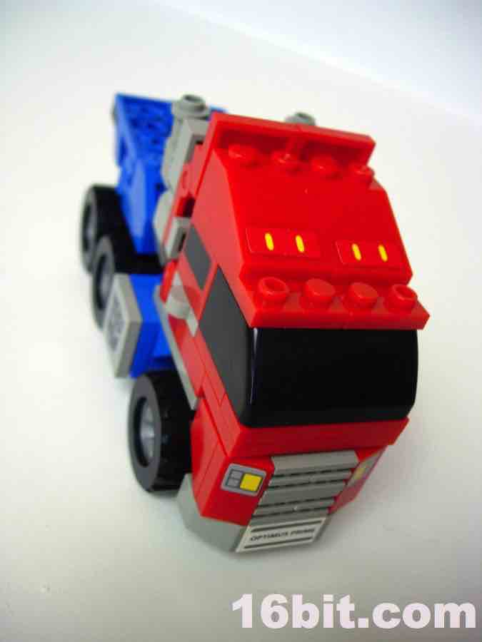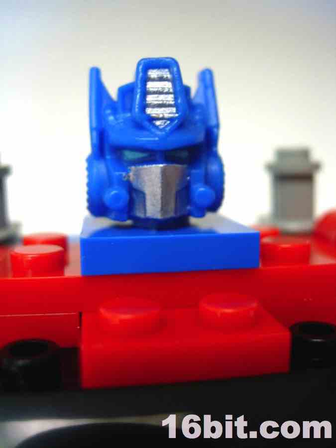 After you've taken a good look at the robot and realize he has no hands to speak of (although some of the larger toys in the line do), it's pretty obvious that the bulk of the pieces here are replicas of (or are inspired by) existing LEGO elements. They're fully compatible with the Danish bricks if you're so inclined, so it's possible you'll want to steal this Optimus head assembly for your own customs. If not, and you want to see what the truck looks like, just take it apart to see what the rest of the toy looks like. If you like building-- and not just leaving an item completed after it is finished-- this kind of toy should be a real treat. If you're the obsessive type that likes to fidget with your Transformers to bounce from one mode to another, prepare yourself for dented fingernails and low-level frustration.