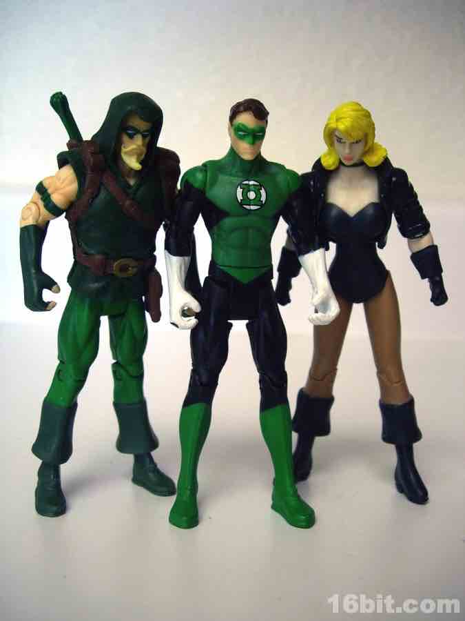 Includes: Bow, Black Canary, Green Lantern, clear display stand