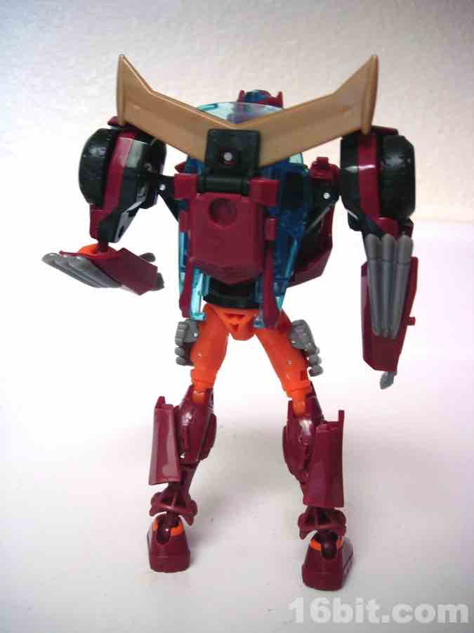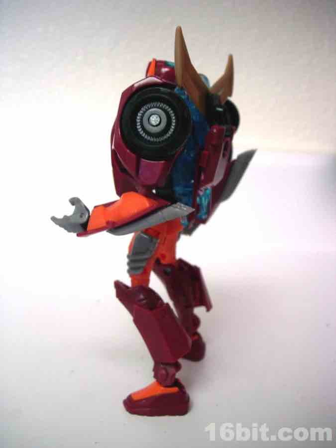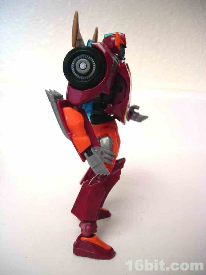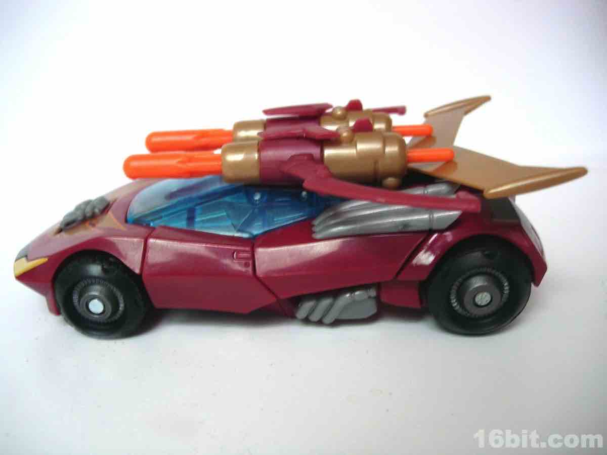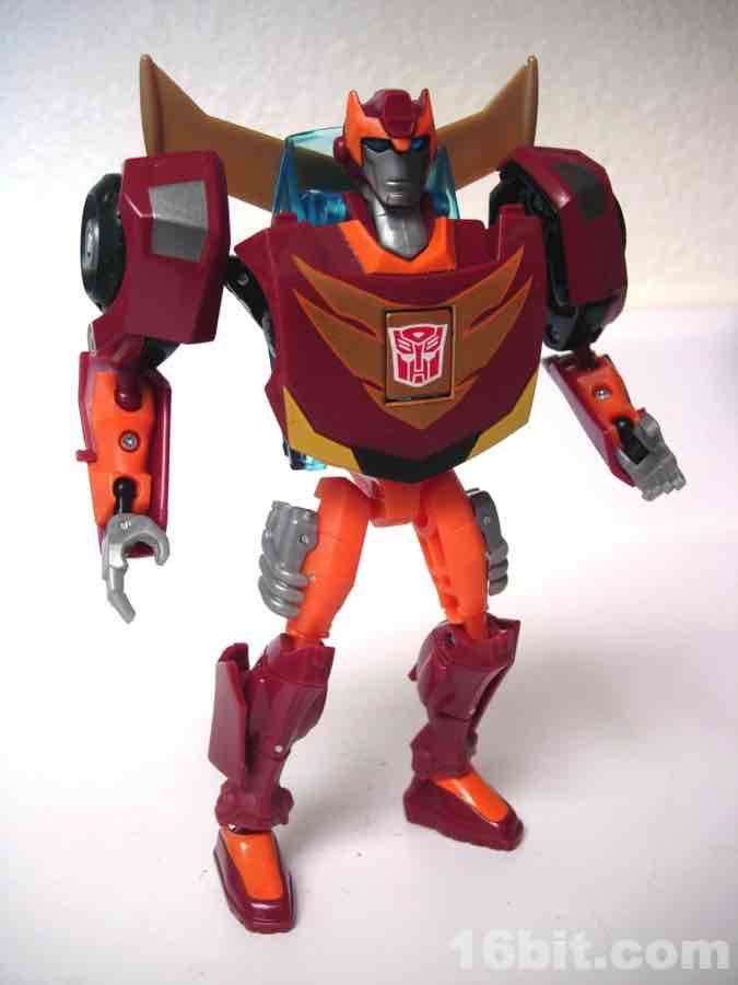 Sized just like any other average deluxe toy, Rodimus Minor (not Prime, or Major, or Hot Rodimus) easily transforms from a car from the future to a pretty dang good robot. Like the bulk of the Animated line's designs, there's minimal kibble and both molds are generally pretty solid. The vehicle is a fun car, and the figure is a surprisingly well-articulated chunk of plastic. If you end up having to pay a premium for him, you may as well do it, it's far better than any other "Rodimus" toy in terms of movement and detail. (Yes, even the Classics mold. Sadly, that's a chunky toy.)