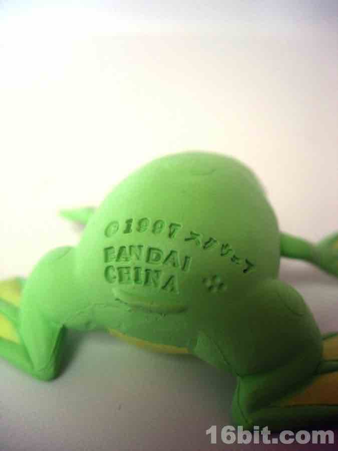 Item No.: n/a Manufacturer:BanDai Includes:Display stand, frog Action Feature:Limbs can separate, were you so inclined Retail:est. $15 Availability:1997 Other: Japanese release