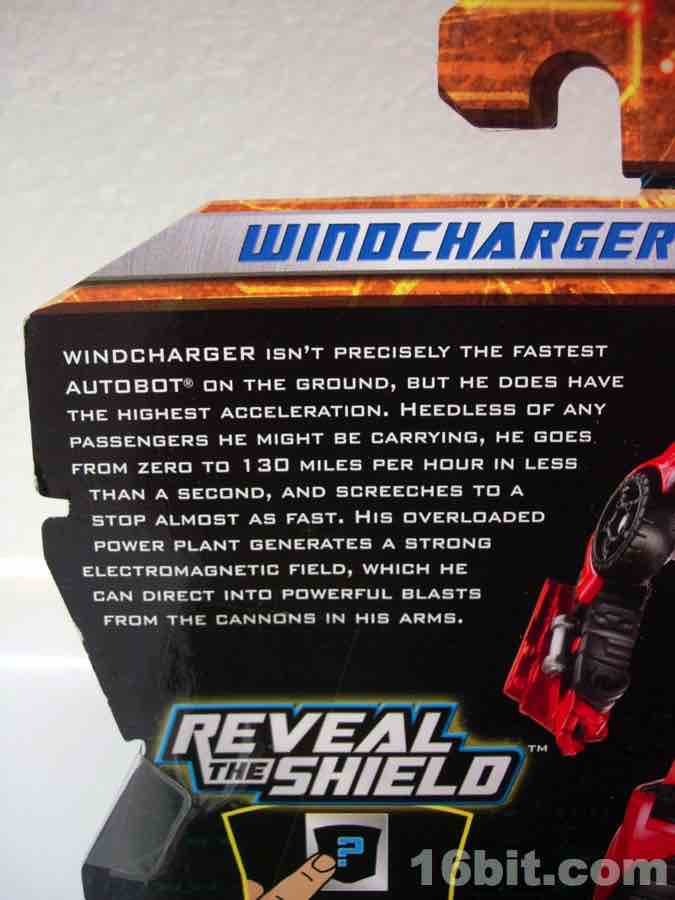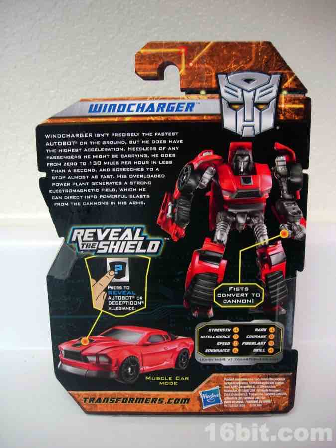 Item No.: Asst. 98438 No. 28578 Manufacturer:Hasbro Includes:n/a Action Feature:Turns into a car Retail:$7.99 Availability: Spring 2011 Other: The first "classic" Windcharger in the modern line