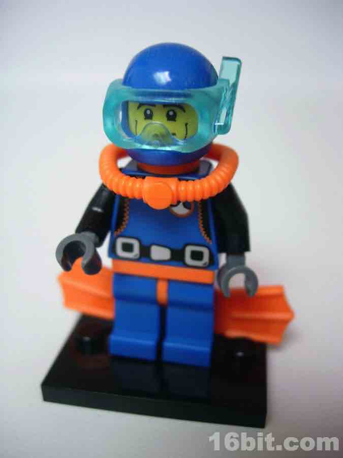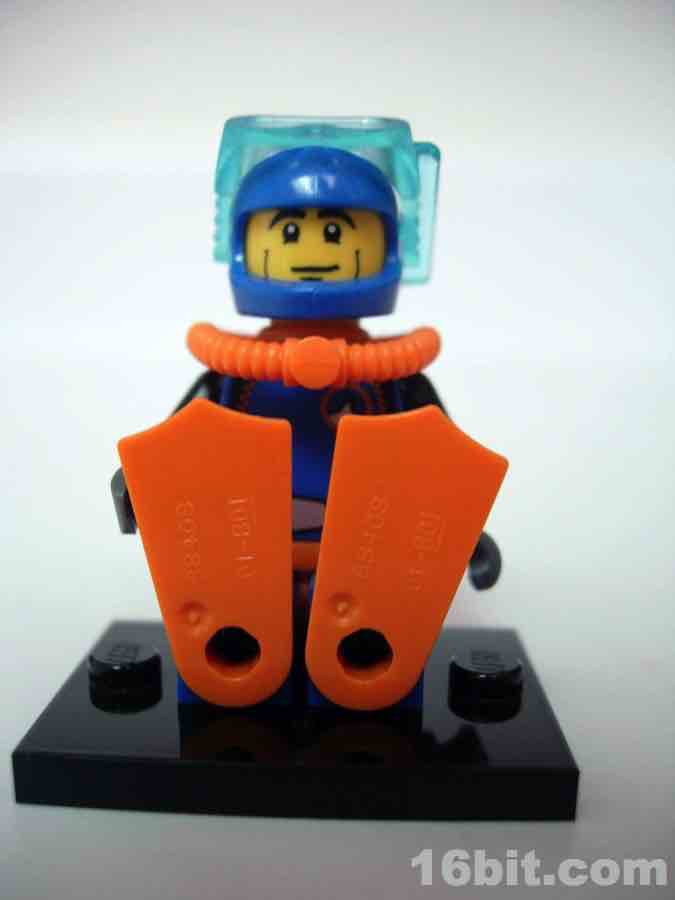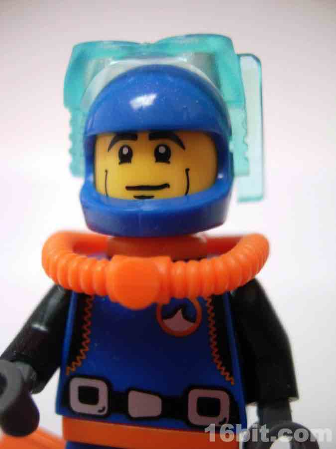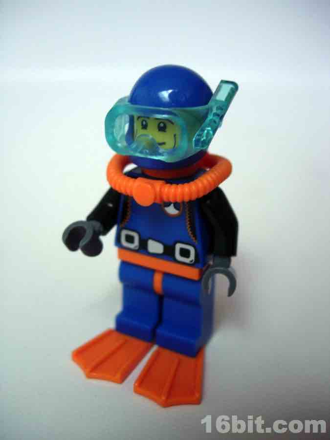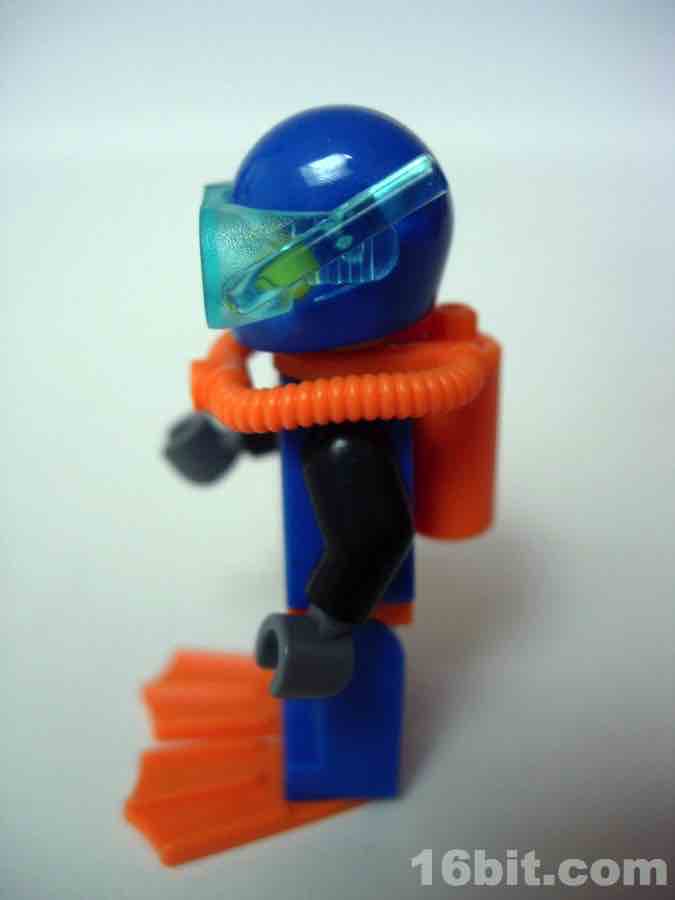 One thing LEGO has done well since the 1990s is divers. There was a magnificent diver theme around 1997 with amazing figures, boats, and even a whale skeleton. They don't do many of those lately, but we did get a modern take on those diver figures with this Deep Sea Diver. He reuses the basic helmet design with a unique set of goggles that clamp on and rotate up, and he has a swell SCUBA tank on his back. There are even bright orange swim fins to complete the ensemble.