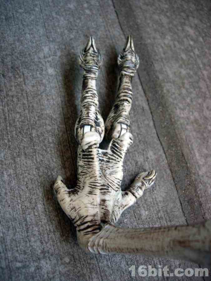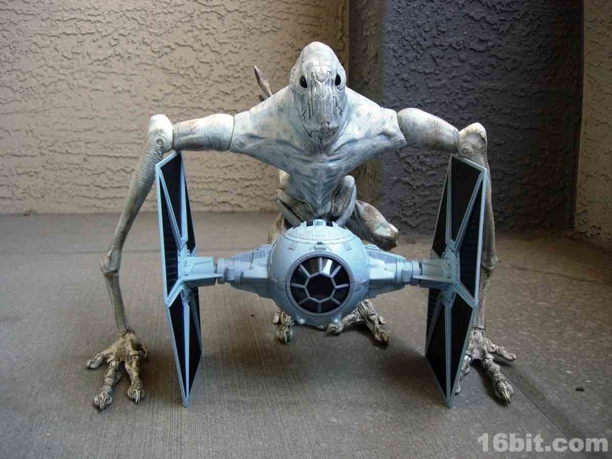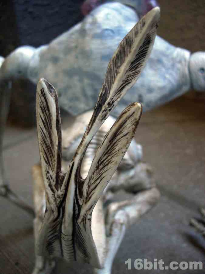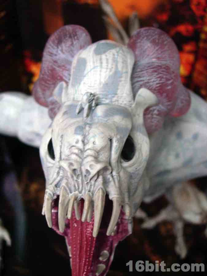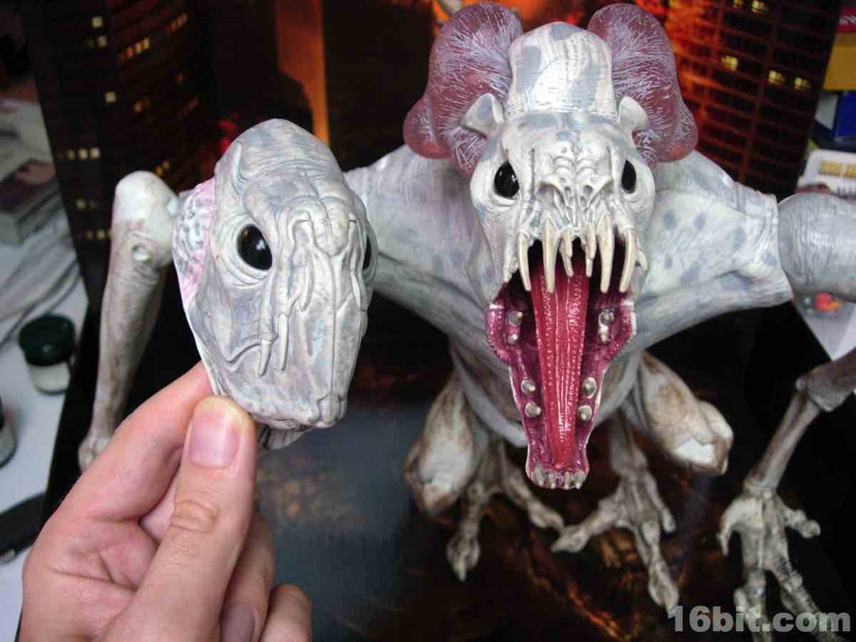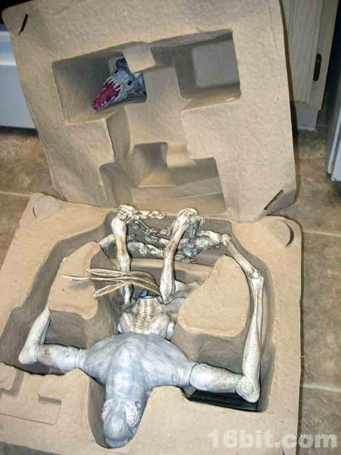 This monster has more articulation than I care to count. On his torso are a couple of smaller arms which are fully jointed and, if I read correctly, designed to be an external part of the digestive system. (They weren't seen in the movie much.) In addition to this, each limb is jointed in several places in addition to the digits. That's right-- not only are the fingers and toes jointed, but they're jointed in multiple places. There's also a tail, plus he has a few extra joints you're going to discover as you futz with him. On the whole this is awesome, but gravity can be a cruel mistress when it comes to displaying the toy. Its weight will, over time, cause him to sag a bit and this may actually cause him to topple over if not leaned or balanced properly.