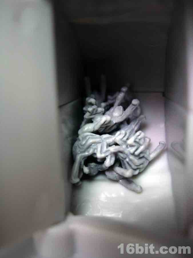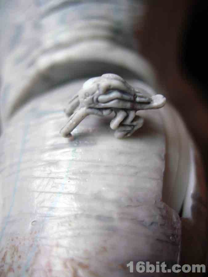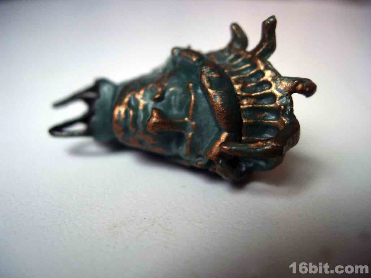 While being a large naked wild animal, he doesn't necessarily need any accessories. Not content to put a big monster in the box alone, Hasbro included the aforementioned extra head plus a few other goodies. A plastic Statue of Liberty head has been mangled and cast in green plastic with some bronze paint added to simulate aging. Her crown is wrecked, and there are dents showing she's seen better days. In addition to that are a tiny sack of parasites from the movie's obligatory SquareSoft-inspired sewer sequence. (Ever played a Square game from the mid to late 1990s? You're going to be in a sewer.) These tiny parasites are a fraction of an inch long and sport no articulation, and are very difficult to see with the naked eye. Even with a camera, there's not a lot of detail but you can see sculpted limbs brought out through a paint wipe. I'd rather Hasbro make a larger version of the creature, but that ain't gonna happen. As a freebie it's a nice touch, and it would be great to have appropriately scaled human figures for them to attack. For time time being, I assume MicroMachines or Action Fleet human figures might be around the correct size.