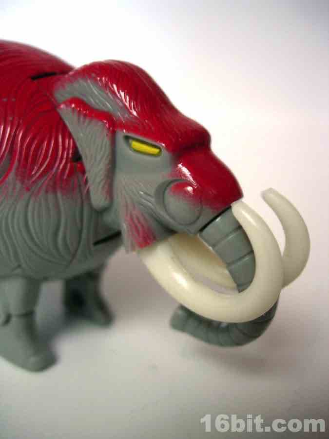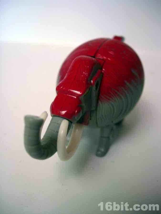 All Meteorbs are basically cut from the same cloth-- you get a nifty little toy creature of some sort that folds into an egg. In this case, the egg has extensive sculpted fur, molded grey plastic, and is topped with bright red paint. I can't figure out why, perhaps at some point scientific thought on prehistoric mammals said "absolutely, the elephants of old were gingers." That or maybe it just looked good at retail-- dark purple didn't make a lot of sense for a sauropod either but I guess one color is just as good as any as these things go.