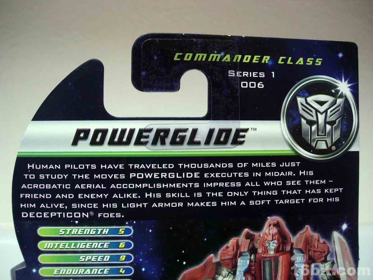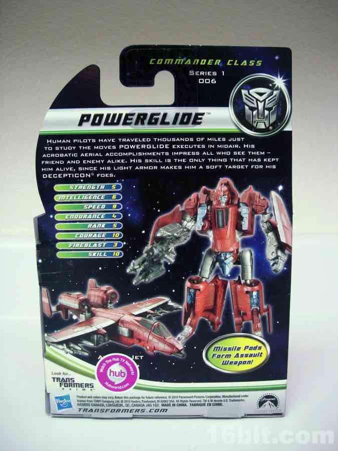 Item No.: Asst. 28707 No. 29683 Manufacturer:Hasbro Includes:Guns Action Feature:Turns into A-10 Thunderbolt II Attack Plane, more or less Retail:$7.99 Availability: May 16, 2011 Other: The first small Powerglide since the original