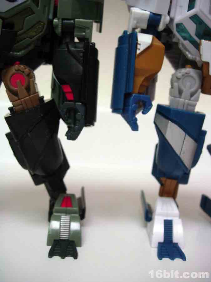I found transforming Deep Dive a clunky experience compared to Sea Spray, as my sample had seemingly tighter joints and in spots didn't feel like it pegged together quite as well. It's still pretty close though, and fundamentally the same kind of toy in new colors. The toy is meant to be played with in conjunction with your other toys, the box (oddly) calls out that his vehicle bed can store other Scout-class toys, a term I assume to be inside baseball to any non-collector who might buy it. The toy also has a series of those raised rods so you can attach c-joint/c-clamp/Miyake Joint weapons if you're so inclined. Since you probably don't exactly have a bunch of those, well, who cares? Not me, that's who.