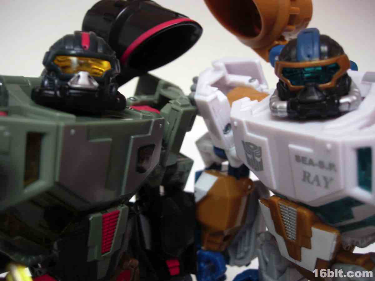 The Reveal the Shield series is sorely lacking in Decepticons, and when I first heard about this guy being a black Sea Spray I thought "cool, a new Decepticon!" Nope! Hasbro made this an Autobot, and the line was bizarrely balanced to the good guys-- Reveal the Shield sported 17 Autobot characters to its 5 Decepticons, all of which were dumped between November 2010 and June 2011 when Deep Dive and his ilk showed up at deep discounter stores after a brief stint as a de facto online exclusive.