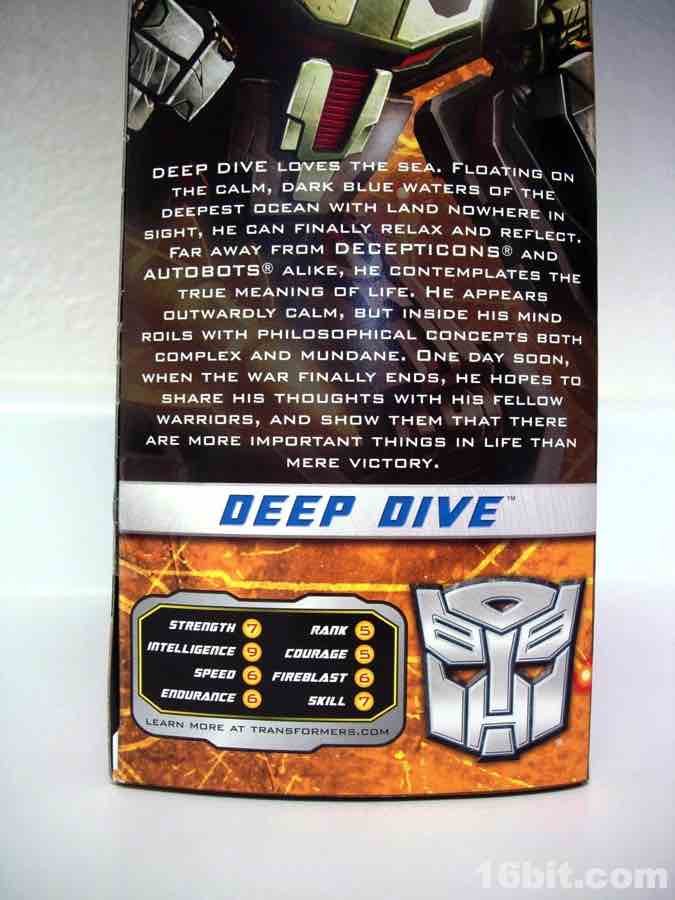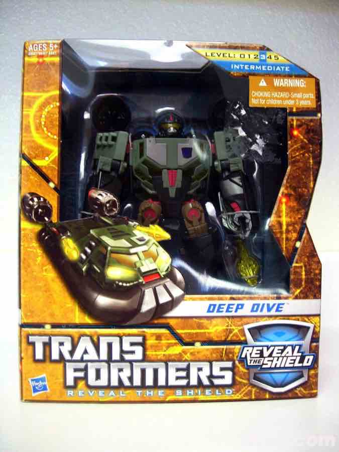 While it seemed that Hasbro had high hopes for its Reveal the Shield line with the return of a classic sticker-based gimmick and tons of new and classic characters, the line limped out of the gate much in the same way your squeeze ketchup sort of spews out of the soon-to-be-empty bottle. "Is that it?" you ask. Yes, yes it is-- and Deep Dive was one of the final toys (and the final Voyager-class boxed toy) in this short-lived line. Granted, short-lived is a good term to describe the bulk of the 2010-2011 offerings from Hasbro and Takara-Tomy's Transformers lines... we got a lot in a very short time, but a significant percentage qualified as scarce and heaven help you if you wanted to buy it retail.