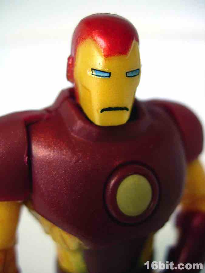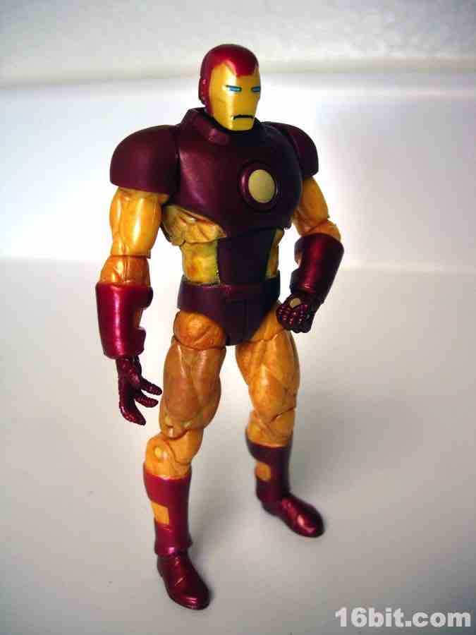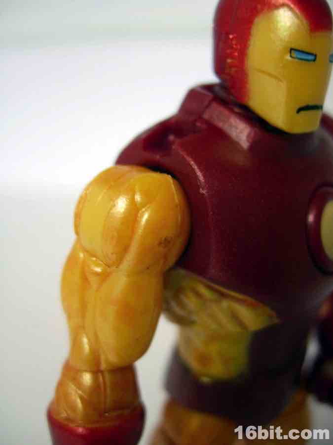 The metallic paint job looks good, although the red isn't uniform throughout his costume, nor is the yellow. So I guess it doesn't really look good. The helmet has some blue and black to bring out the face, but ultimately I have to wonder if figures like this are the reason we're seeing an increasingly homogenous toy aisle. Fewer companies and fewer brands are on the pegs these days, with some sporting no meaningful articulation and others like Iron Man here having so much it almost doesn't matter. If you raise his arms, the oddly articulated shoulder armor pops off. Had Hasbro given it a standard cut joint like you may have seen on a typical 1990s release, it wouldn't be a problem. I like wrist joints, but if boiling water is a required ingredient to activate their functionality, why even bother?