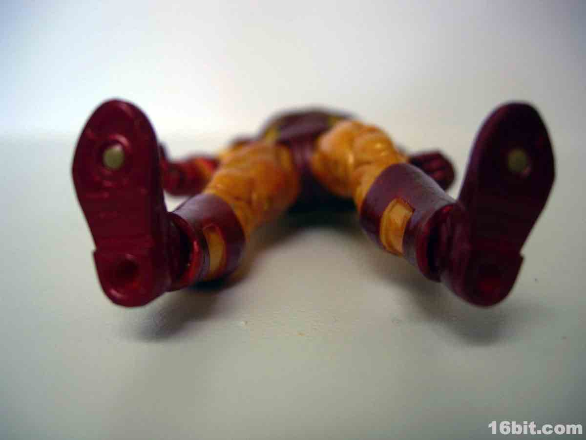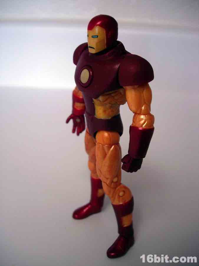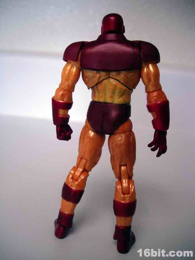 An acceptable recreation of the 1990s Iron Man armor, the figure shares a lot of pieces with the Silver Centurion look. The helmet, upper torso, and shoulder pads are new but the rest of the figure is shared with that other release. I admire their reusing parts, but I don't think the end results are particularly positive. The figure's range of motion is decent, but there's not much else to it-- Hasbro has created a line of toys whose sole play feature is to be posed, presumably in dioramas, and positioned on a display stand. While many collectors say that spring-loaded rockets have no place in toys, I think they have a place and help give the figure an added function. This Iron Man can't sit down-- not that he needs to, but what are you supposed to do with him? The figure has so many points of articulation that, as a toy, it would be almost as well-served to have no articulation below the waist.