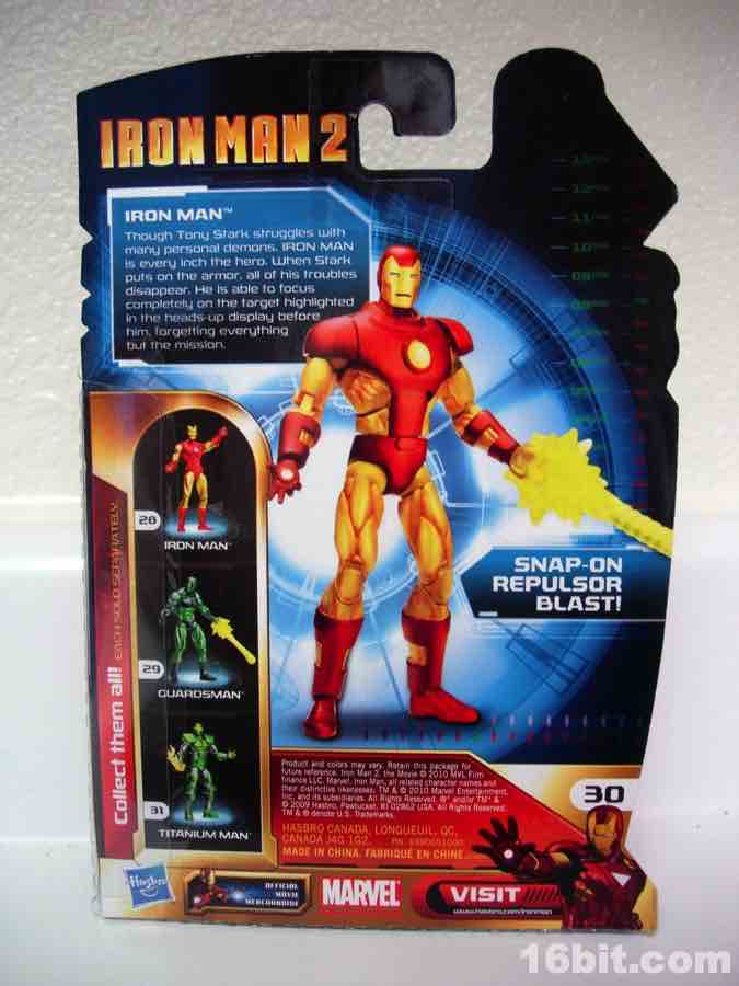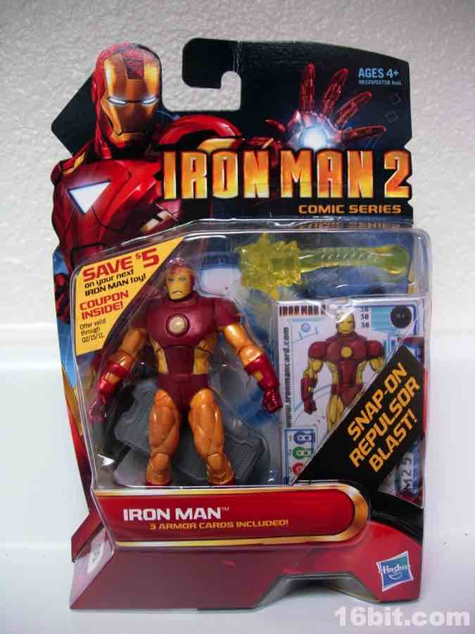 Item No.: Asst. 93758 No. 98329 Manufacturer:Hasbro Includes:Display stand, repulsor blast, armor cards Action Feature:n/a Retail:$7.99 Availability: Summer 2010 Other: Very Similar to Other Figures