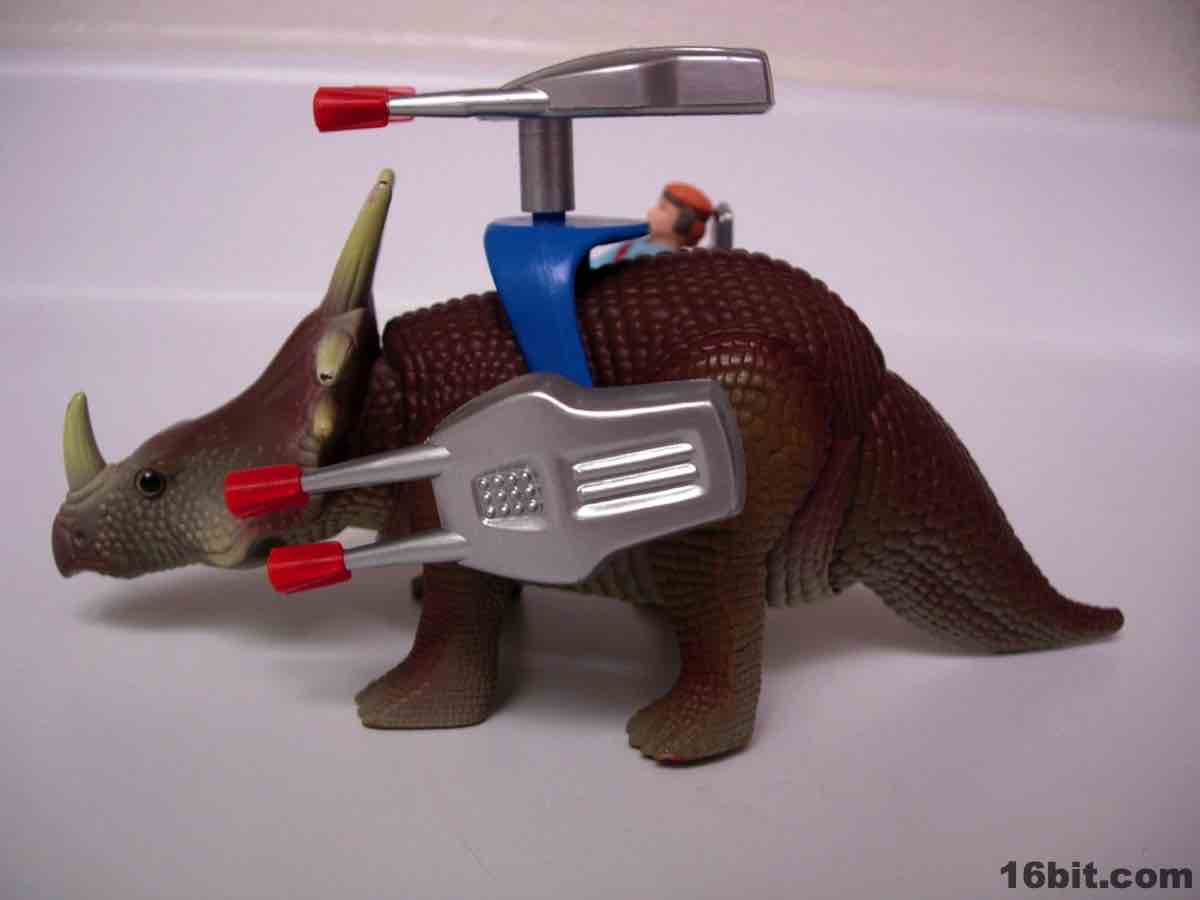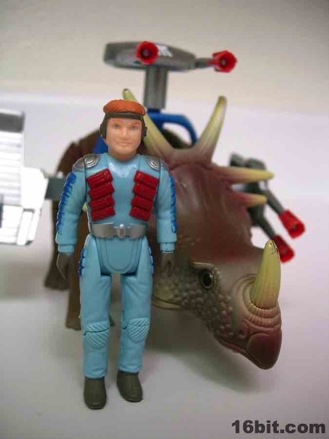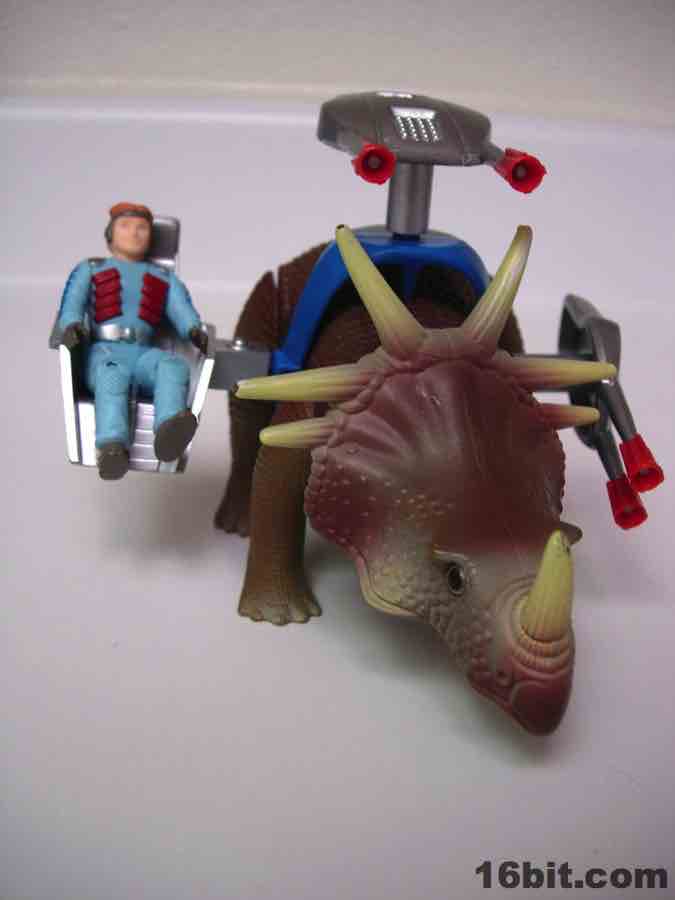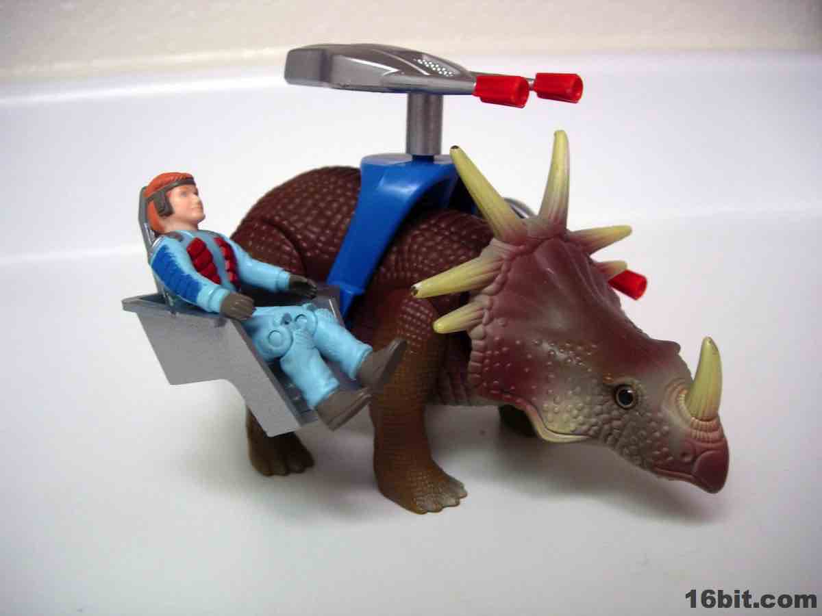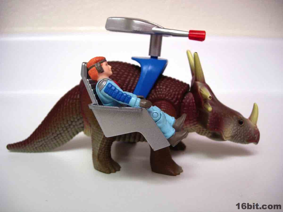 Item No.: No. 9123 Manufacturer:Tyco Includes:2 guns, harness, seat, ladder, water skin, pouch, necklace, rifle, blaster Action Feature:Turn tail to turn head Retail:$7.99 Availability: 1988 Other: Later redesigned as "Smithsonian Institution Dinosaur Collection" toy sans guns, fun