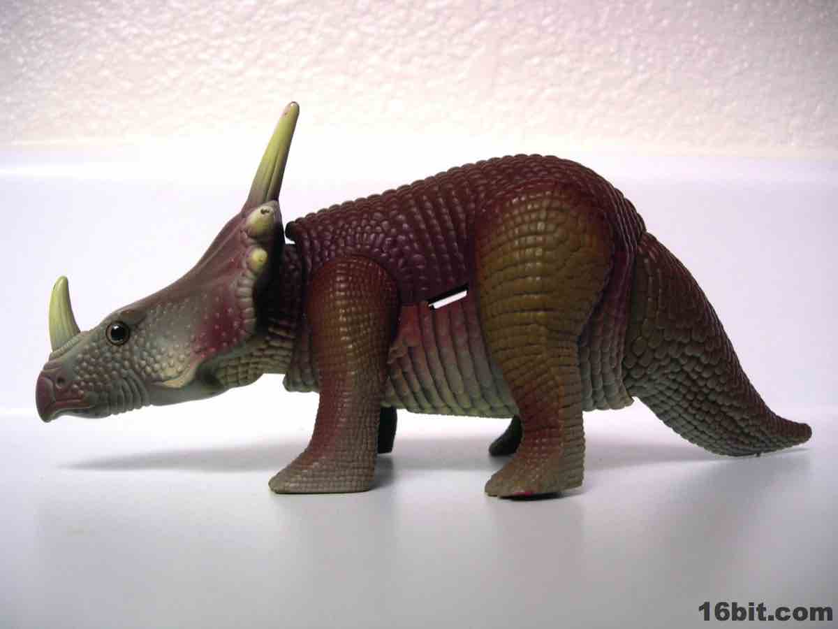 The 1980s were a glorious time for toys, but repaints were still a common thing. The Styracosaurus body was reused on the Monoclonius and Chasmosaurus to keep costs low.