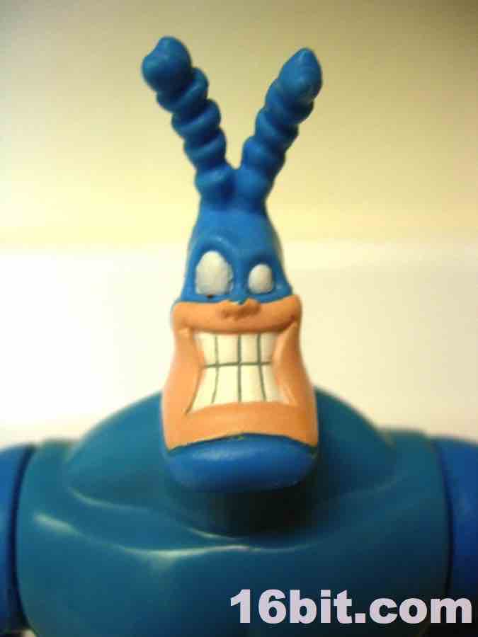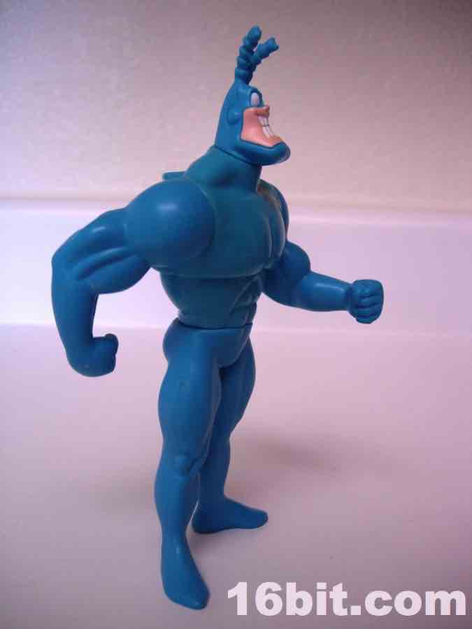 He doesn't do much, but he looks good-- which is sometimes all you'll need. In addition to Bounding Tick's basic action figure line, there were a few talking action figures and 2-inch collectible PVC figures. Some figures like the Man-Eating Cow were rare to the point of being legends back in the 1990s, but the secondary market prices on eBay prove that today, nobody really cares to buy even the rarest figure of the line. As such, it's a buyer's market, and these were some delightful, cartoony, and fairly statuesque action figures. Worth snagging on the cheap, definitely.