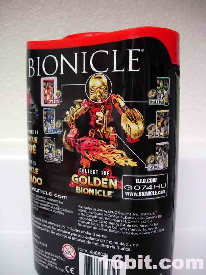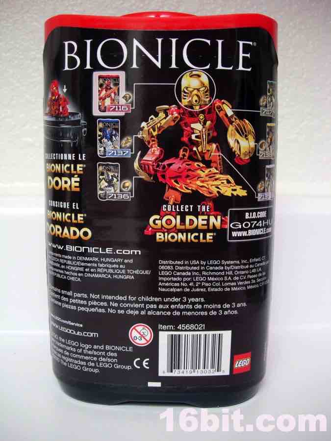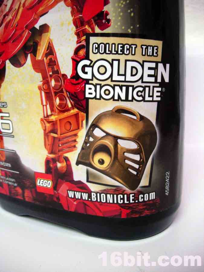 A Note on the Golden Bionicle Promotion: the canister has an upsell encouraging kids (well, you) to buy all six Bionicle Stars toys so you can build the "Golden Bionicle." In case you couldn't tell, this is not a build-a-figure, but rahter a series of upgrade parts. Each figure has 1 special gold piece (Tahu has a gold mask) to create a "super" version of Tahu-- so when it's all said and done, it's just an upgrade, not a seventh figure. (You'd be surprised how many people in the business did not realize this by looking at the box. Or you may be one of these people. No offense if you are.)