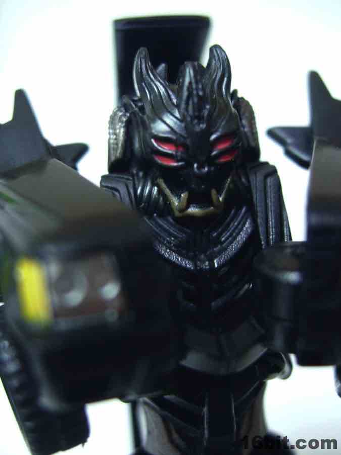 Other than the red eyes, silver fangs, and a little grey on his torso, he's black plastic. Oh, and the car mode paint applications, but let me get to those first.