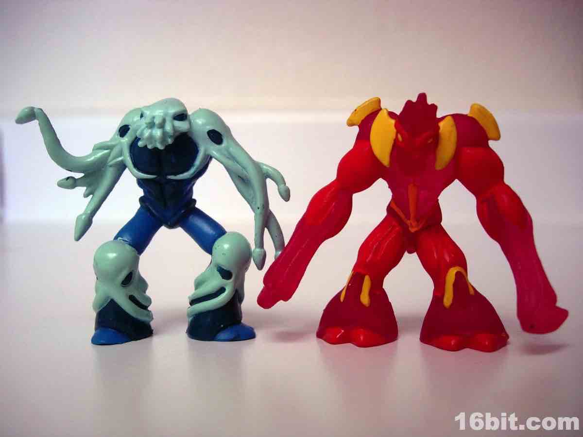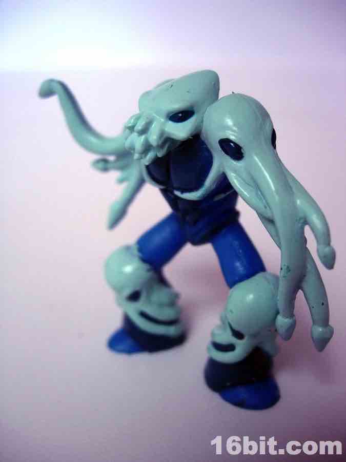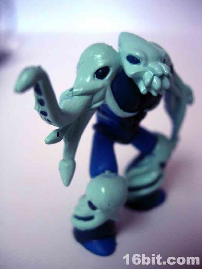 As of today the product is more or less done. If there were a Kay-Bee, you'd see it there for years. As it stands Toys R Us seems to be trying to get rid of its remaining stock, and at an average price of $1 per figure they're actually quite compelling. Not that I or any of you need new toy lines to discover and purchase, but I'm largely happy with this 2-pack. (I also bought a 4-pack but haven't examined it closely yet. It has a mushroom warrior!) While they don't compete with any of the major lines we review here, and most minifigure 2-pack lines are technically superior creations, their beastly appearances are fun and endearing. I don't know why any creature would be made of squids, or why a creature made of squids would have blue "legs" and a torso with what seems to be a defined chest on it, but it exists and now it's part of the 16bit.com offices. I think it's a safe bet I will buy a few more.