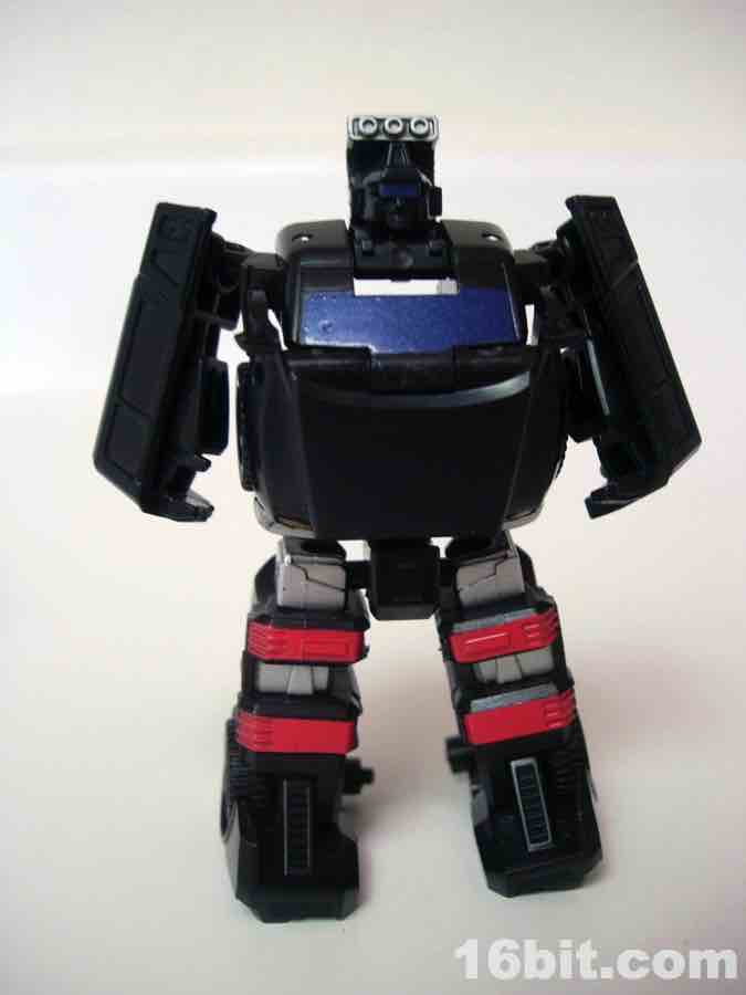 Of this entire batch of toys, this one may have one of the least fun transformations. The head rotates down but has to be given extra force to snap into place, and getting the arms to rotate back and lock in the right spot takes a little extra force. It's not difficult, but it's nowhere near the joy that Prowl and some of the other toys are to change around.