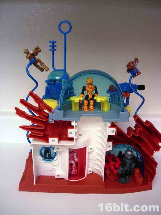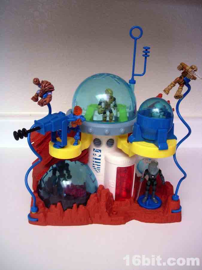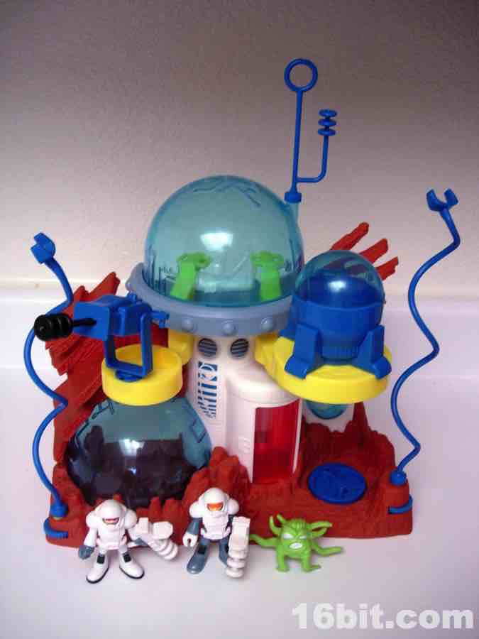 Fisher-Price Imaginext Space Station Toy SetHaving been around for years, Imaginext has received only limited interest from toy collectors-- largely parents for fans of their DC Comics-related lines (which now have Clayface and Catwoman, I should add.) Since starting off with a castle trial pack years ago, the range has expanded to dragons, monsters, dinosaurs, Toy Story 3, Green Lantern, and of course outer space, which is where this Space Station comes into play. This inviting retro-future planetoid sports a base, lots of moving parts, a couple of figures, and an alien. While fully compatible with most if not all Imaginext toys, I bought it because it looked like it might be good for Glyos figures, and indeed it is. It's a solid toy in its own right, the kind of things you buy for your kids but as someone who appreciates a fine playset, well, it's hard to deny its charms.
