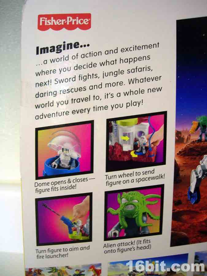 I picked this up at a closing Toys R Us on various stages of stacked closeout pricing, so for about $13 I can't fault it. It's not "Adventure People" but odds are Fisher-Price will never, ever do anything like that again. Imaginext are routinely some of the neatest toy figures for kids on the market today, and with their expansion into licensed territory they're well worth seeking out. The space line appears to be in the process of being phased out, so if you like this piece it might be worth grabbing sooner than later.