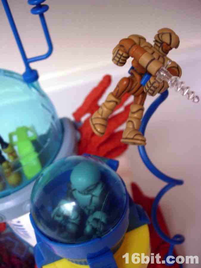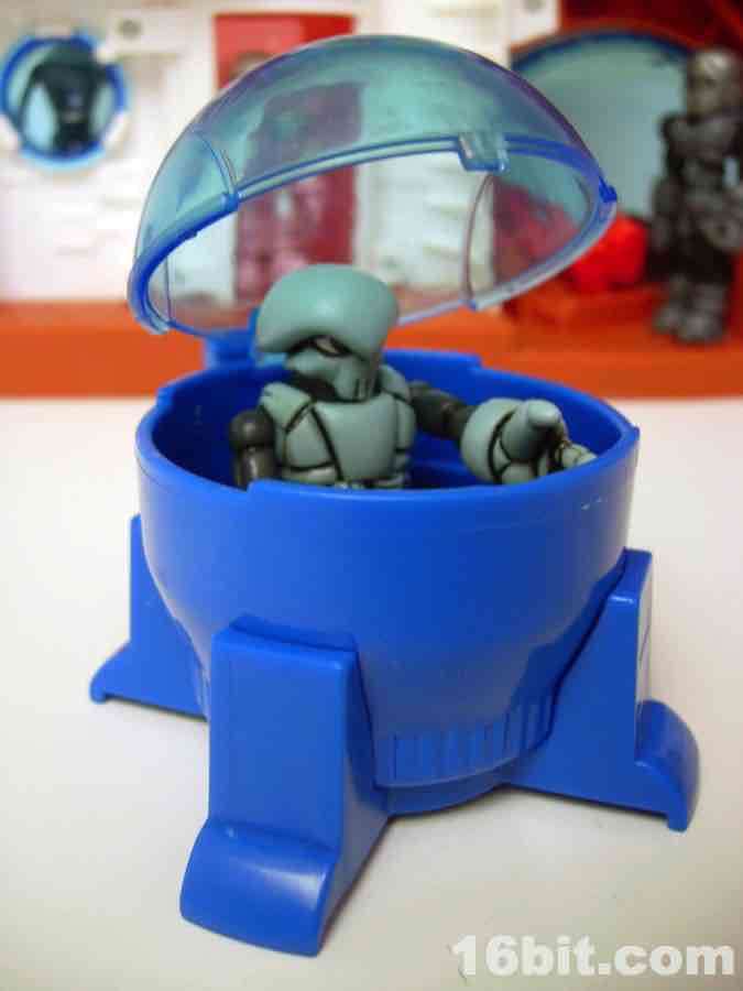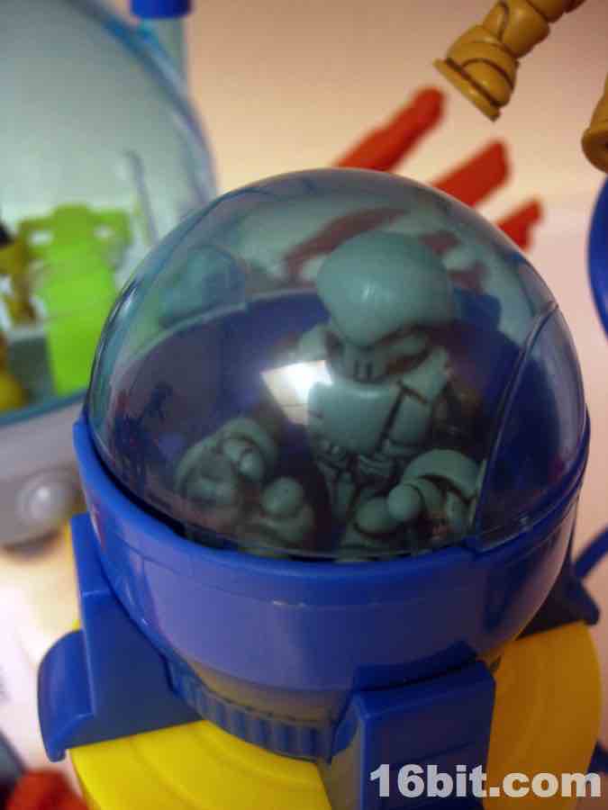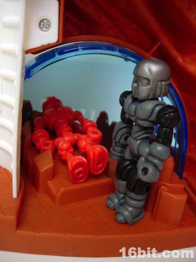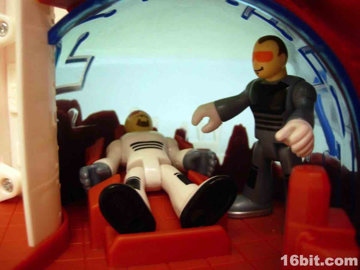 Ultimately, the figures are nice but not astonishingly impressive unto themselves. They do work as part of the playset, as the planet has foot holes for the astronauts. You can put one in a rotating base where it will function as a key to the doorway, while a moving gunner's station is also specially designed to hold this specific kind of figure. Hasbro's Playskool Heroes (the new licensed ones) more or less fit, but the Imaginext stuff fits like a glove. There's even a sickbay in the playset perfectly sculpted for a figure-- it's clear the engineers were thinking of everything save for a chestburster action. And let's face it, kids need to learn about chestbursters somewhere.