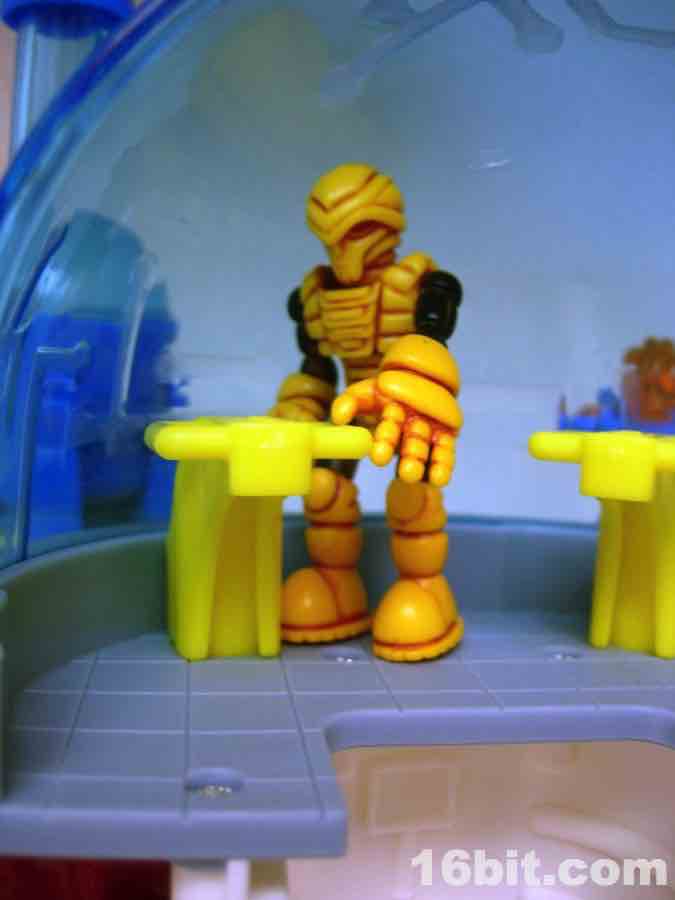Due to the differing foot sizes, the Glyans and Travellers don't quite fit perfectly in place, although the Buildman hands are sized right for the cannon grips. If you collect the Glyos line anyway, this is arguably worth a look. If you're the kind of person to paint up and customize your toys, this thing may be a dream project-- there is so much sculpted detail on the inside of the space station it will make your head spin. With no labels or no painted detailing, you could go nuts coloring in stairs, monitors, or other greebles.