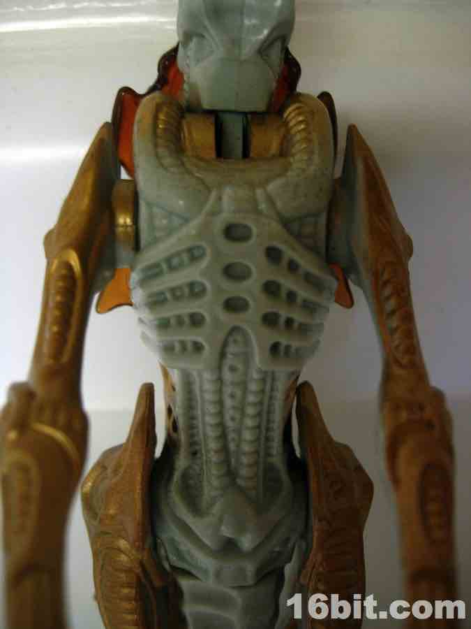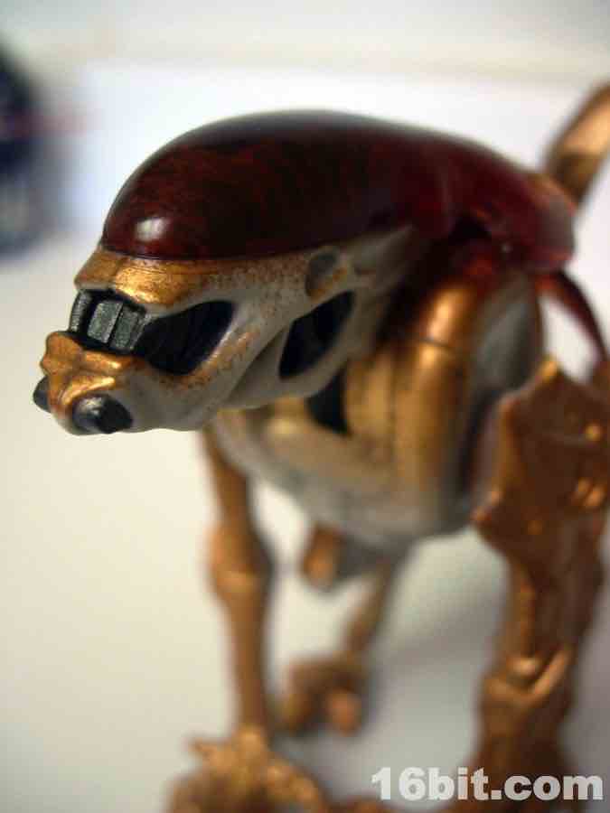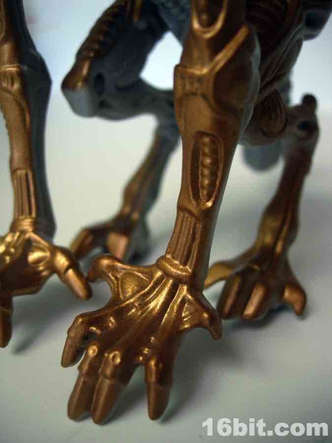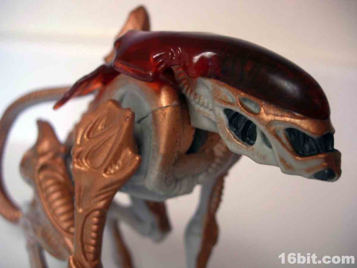 Arguably every alien in the line is an army builder, so you could have a pack of these if you wanted. (Did anyone want a pack of these?) When I first got the figure, its grey coloring with a orangey gold paint over the skin really brought it to life, and its dark grey teeth really stood out against the gritted mouth. It's a very striking image but it doesn't make for the best "action figure" in the world. It is, however, a fine toy. He can sit, and has limited ability to be posed. The head is geared to his two front arms, which move in unison and act as the lever to launch the parasite. Push them forward, and it shoots. The back legs move individually, and the tail rotates. It's really fun to play with, but I could see it being boring as a shelf-doomed collector's piece. This is a piece designed for you to have fun with your kids, or cats, launching the parasite on the floor while having fun on a nice afternoon.