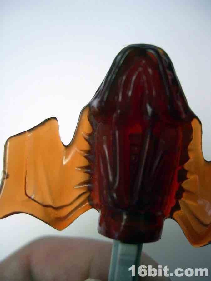 Measuring about 7-inches long from the tip of the nose to the furthest reaches of the tail (before it bends back), the figure is designed to sit up like a cat and sort of "pounce" and launch a projectile. The little parasite fits right behind the clear amber colored dome on his head, and is only loosely inspired by the alien design. If anything, it's more like a bat mated with a Wether's Original candy. The larger creature retains the biomechanical aesthetic with the various tubes, ridges, spines, and chest all appearing as mutations of the movie design.