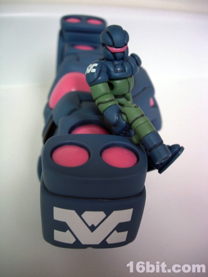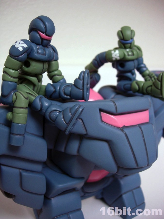 The pink coloring and symbols sold me on it-- I already had another rig but loved the look enough to just have to get this one. If you buy Glyos figures, I'd say you owe it to yourself to get a rig, but odds are you should pick one based on what's available cheaply. This little guy stands 4-inches tall and feels like a lost 1980s toy. The only thing that could probably make it more exciting to me is if they did it up in RoboStrux colors... or the tank from Blaster Master. I was excited to get this one, I hit "reload" on the Onell Store waiting for it to go up, and am glad I did. It's fun and simple, and if it were a smidgen cheaper I'd probably insist all of you buy the next one the second it goes live.