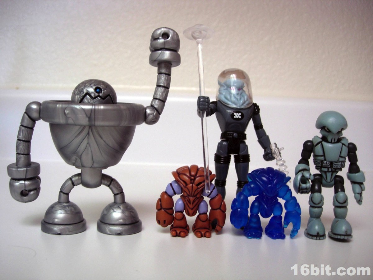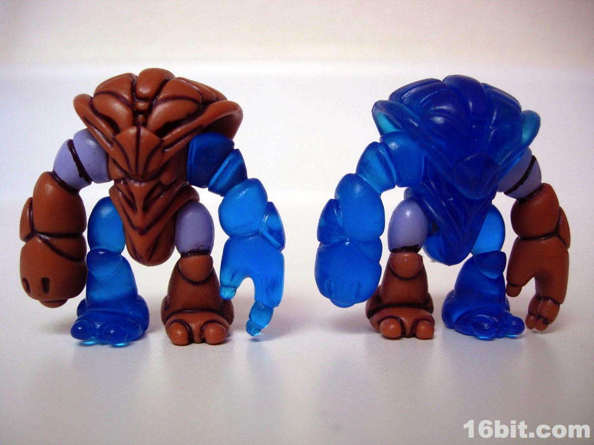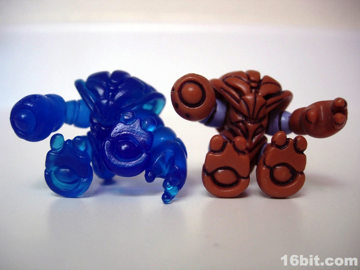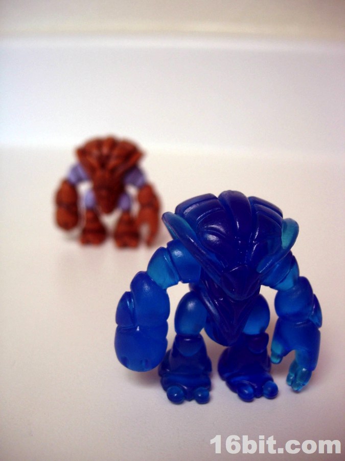 This set comes in a box, which is increasingly rare in this line. Each set includes one "clear" and one "painted" figure, and there's also a fifth set of glow-in-the-dark figures which I missed and is no longer available. It's depressing. But at least I got this set so far-- one dark, clear blue figure has no paint while his companion is pink and purple with black markings filling in his various grooves and what I can only assume are eyes. Each figure has one claw arm and one "gun" arm, and the characters are described as little psychic balls of energy-disrupting fun on the packaging.