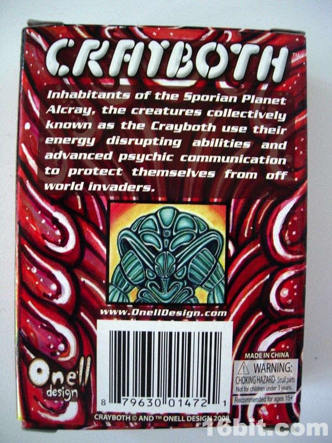 Item No.: 2 Manufacturer:Onell Design Includes:2 Crayboth figures, paper flyer Action Feature:Take apart, swap limbs Retail:$6.00 Availability: February 2008 Other: 5 different 2-packs have been made so far