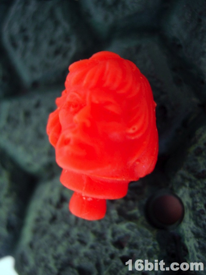 I rarely get to say this, but here's something you've probably never seen and will never see again. One of the really cool things about the Glyos system is that it opens the world of customizing up to new and weird places. For example, this He-Man Head is not a Mattel product, but something a dude named Eric cranked out for fun and made four of. As in, literally four-- he made a similarly tiny run of blue "Faker" heads as well. Given the labor and materials, the eight bucks for a resin color-changing head is about right.