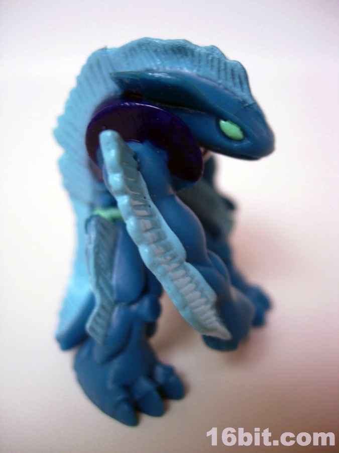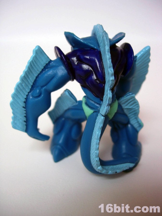 The other side of the package brings you Mantra the Implacable, a blue eel-like creature with a dark blue torso, light blue fins, and teal eyes. The level of detail on this guy is impressive, lots of little notches on the funs and claws on the feet are well-designed, with a lot of muscle on her limbs. "Her." Suuure.