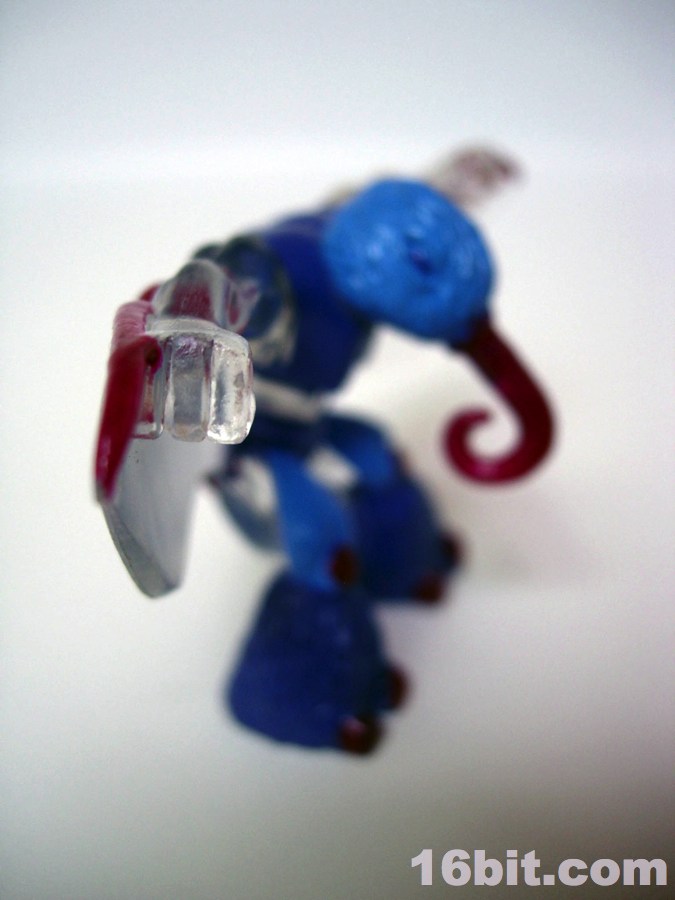Not being one to waste a stupid name, Playmates used The Severe Guardian for 2 different versions of this moth-inspired beastie. The standard release is blue and yellow, while this one-- arguably the variant-- has crystal-clear wings, some blue, and a little purple bringing it to life. The clear is unusually clear-- I've seen a lot of clear toys in my day, and rarely does anything look this sharp. The arms are also clear, with a purple border/veiny thing along the top which does wonders in bringing out the detail, and really did make photographing this guy a breeze.