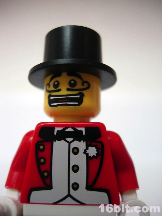 Sometimes a figure is clever, and that makes it worth buying. In the case of this LEGO Ringmaster, it takes an out-of-place in LEGO concept (a circus) and slaps a whack-ass crazy head on it. The smile alone is freaky-- the figure has huge teeth and a tongue, but LEGO kept going with big eyebrows that look like a displaced moustache. And the moustache! Just look at it-- Rollie Fingers would be proud, and were I not writing this during a move I'd have stuck this head on the baseball player's body and took a picture. And that would be the greatest LEGO figure ever.