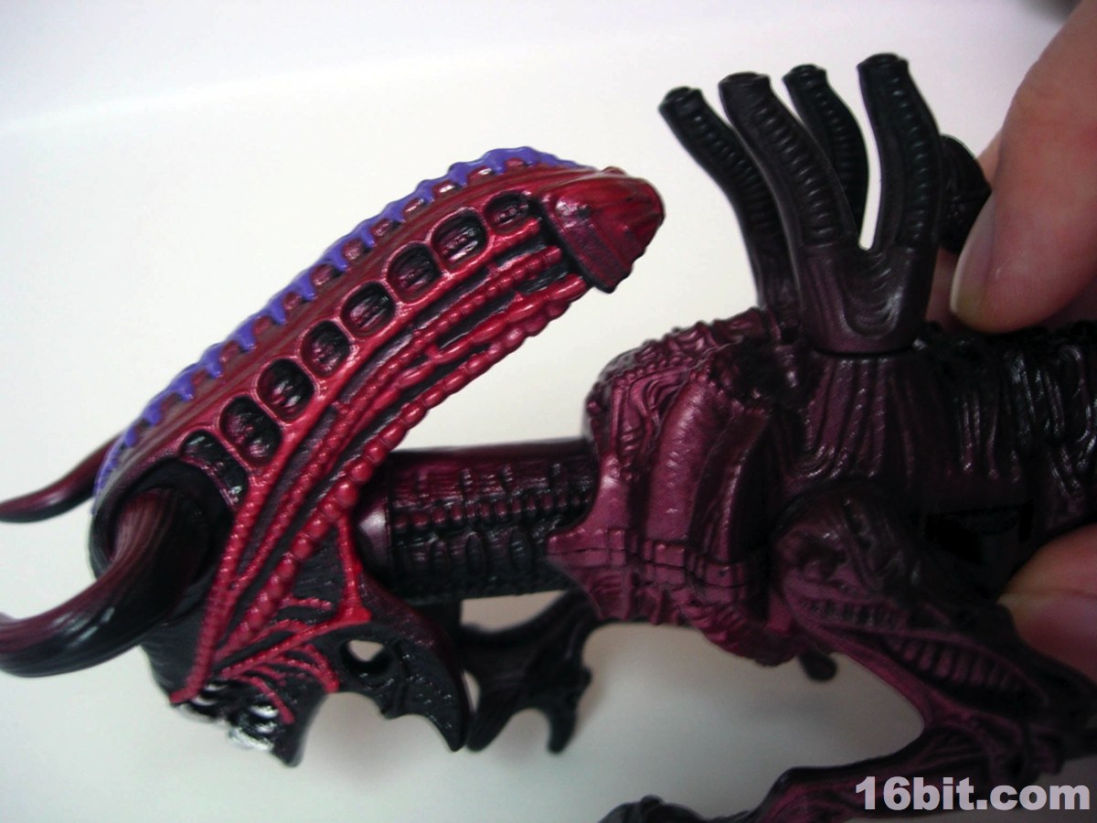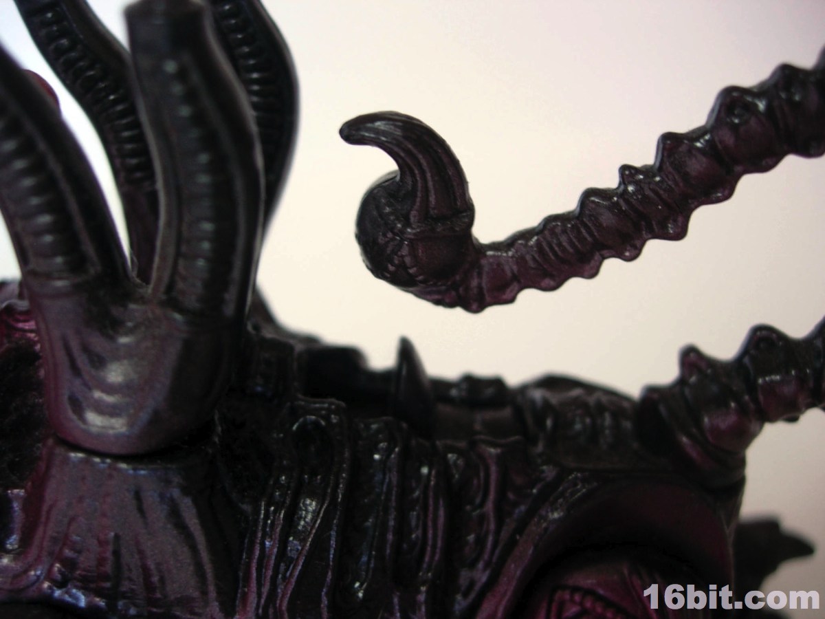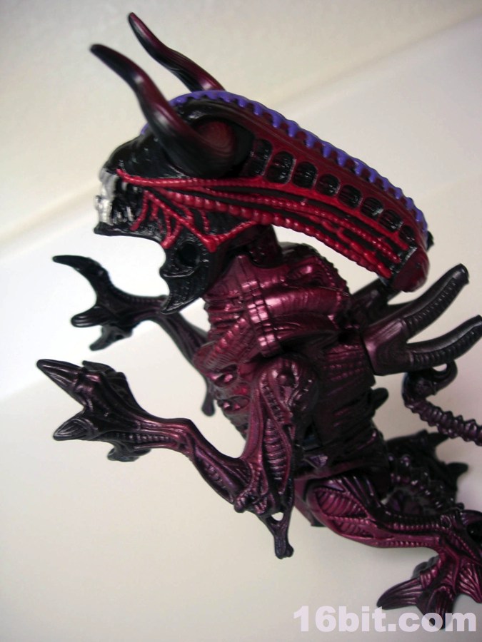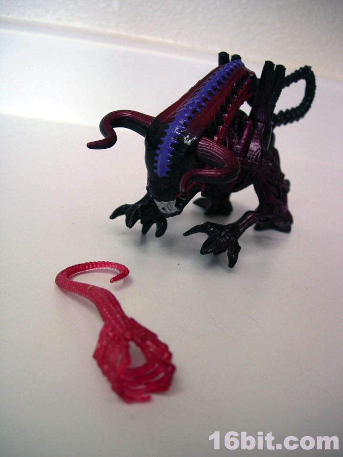 Of the ALIENS toys, the Bull Alien was the weakest of the first three. Standing on four legs, it seems the design was at least inspired by the "Ox Burster" from the excised cut of Alien 3, except this one had some friggin' horns on his head. Each horn is actually articulated, likely for safety reasons, but odds are the figure would have soft rubbery horns were it released today.