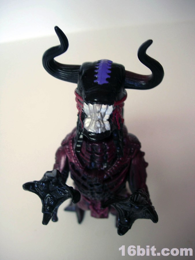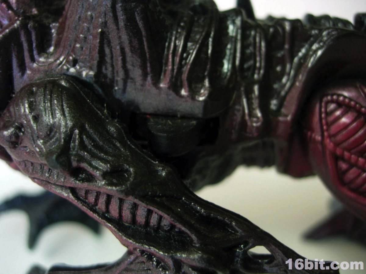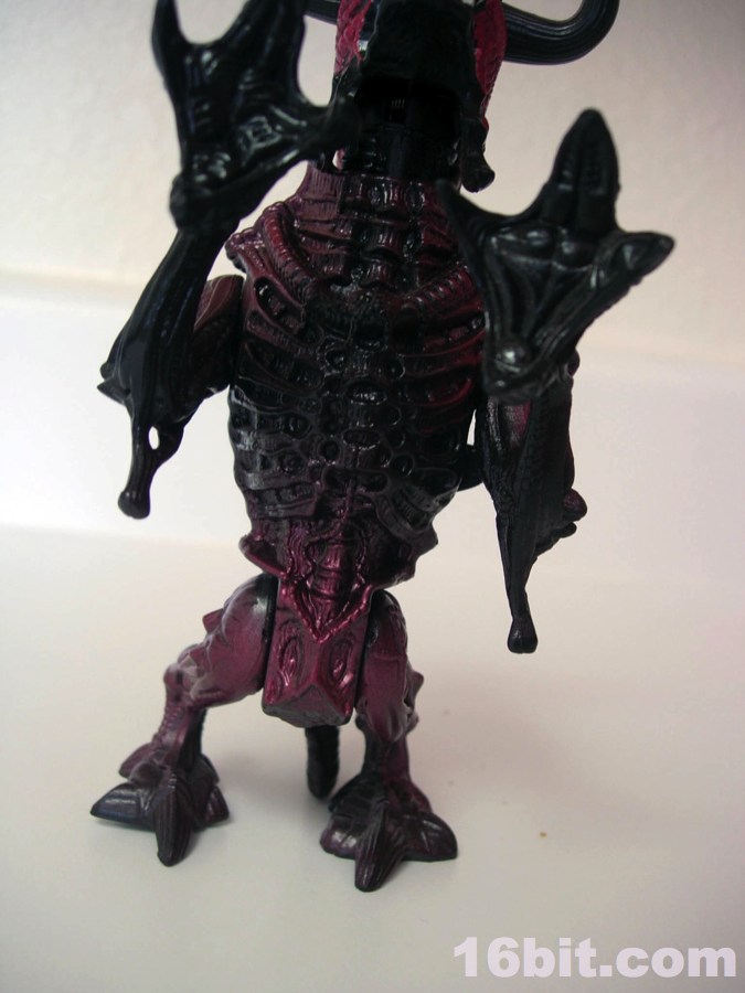 Cast in black plastic, the figure has red and purple highlights to bring him to life, plus silvery teeth. The veiney purple line on the top of the head looks about as obscene as these figures get-- while the symbolism is pretty hard to miss, the design of this release is particularly... inspired.