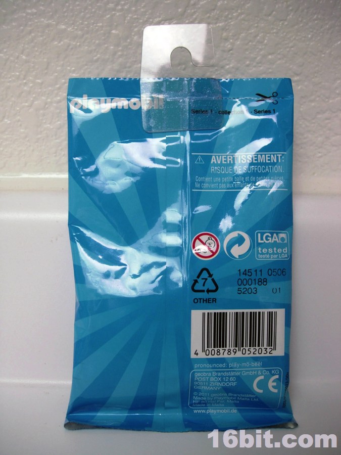The schtick is similar to the LEGO Minifigure collections, with a few key differences. While they're the same price, the Playmobil figures seem to have far more parts and pieces, plus they're not the same construction as a typical Playmobil figure. They come to you in pieces for the first time ever, so you get to plug in the arms, legs, head, and so on-- and the assembly is really tight. It's not a one-time assembly, but breaking them apart will require some Excessive Force on your part-- so be careful, and be prepared for parts to go flying. The instructions actually have a specific order for assembly and disassembly, but after getting it together and apart once, I don't think I'll be doing it again. The parts are interchangeable with other "Fi?ures," as the mainline Playmobil men and women aren't supposed to come apart easily. (It is, however, doable.)